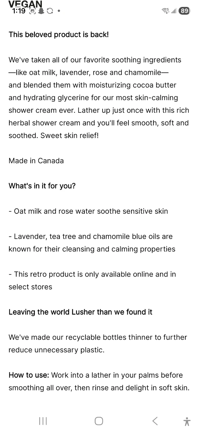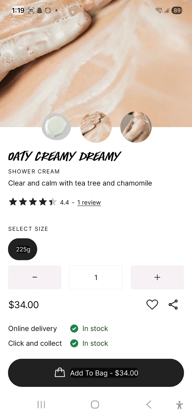 Selling Oaty Creamy Dreamy shower cream! This shower cream contains oat milk, lavender, rose, and chamomile. It's blended with cocoa butter and hydrating glycerine to soothe skin. It will leave your skin feeling smooth, soft, and soothed! Size is 225g. Originally bought for $34