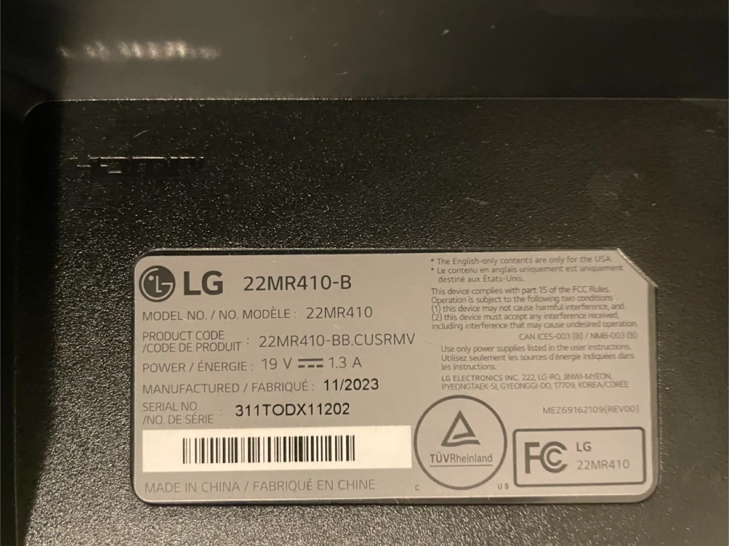 LG 22MR410-B monitor, 21.5 inches — clean, crisp, no flaws.