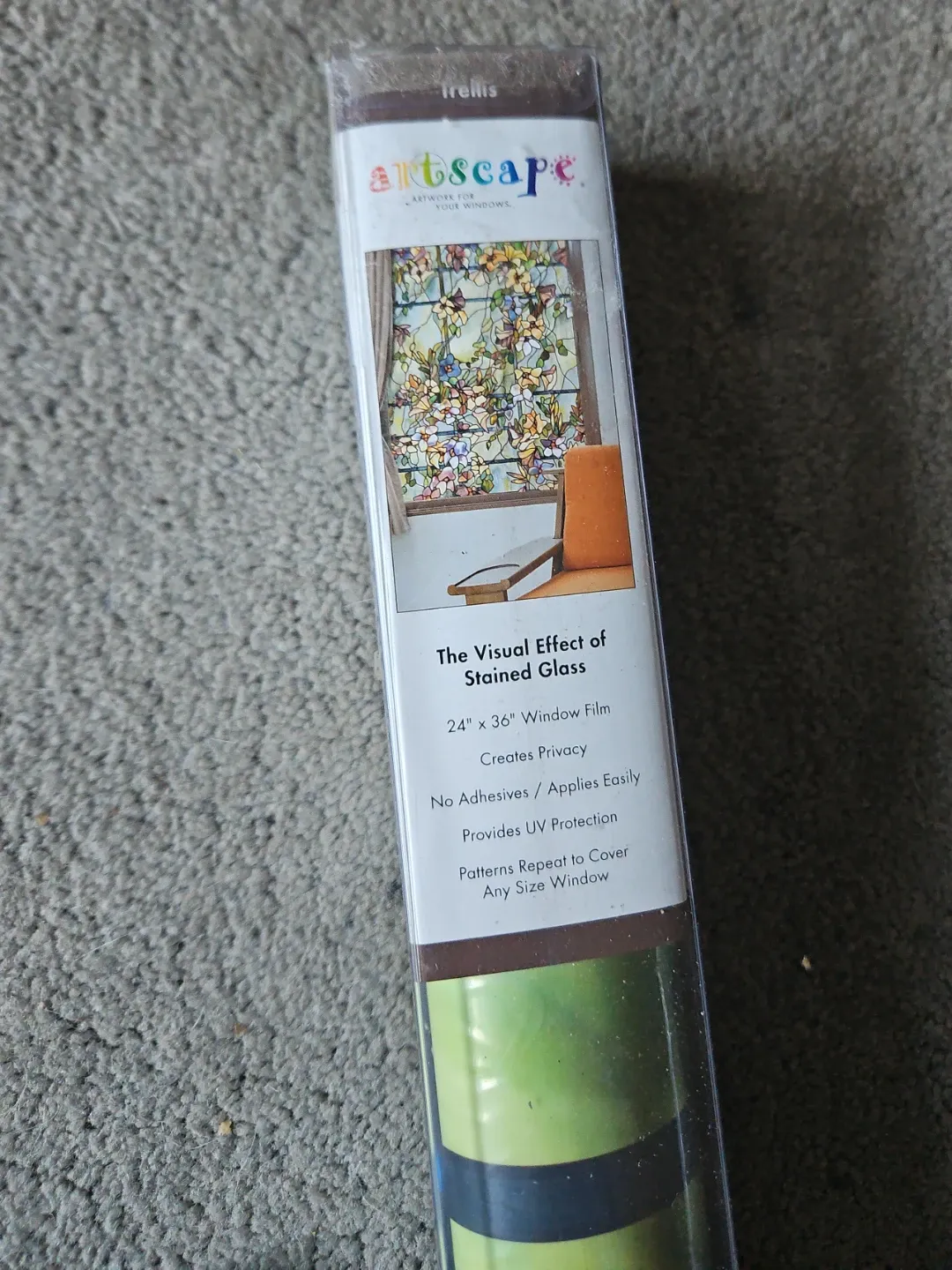 Add a touch of elegance to your windows with this Artscape Trellis window film! It gives the visual effect of stained glass, creating privacy without the need for adhesives. It's easy to apply and provides UV protection, perfect for any size window. The film measures 24" x 36".