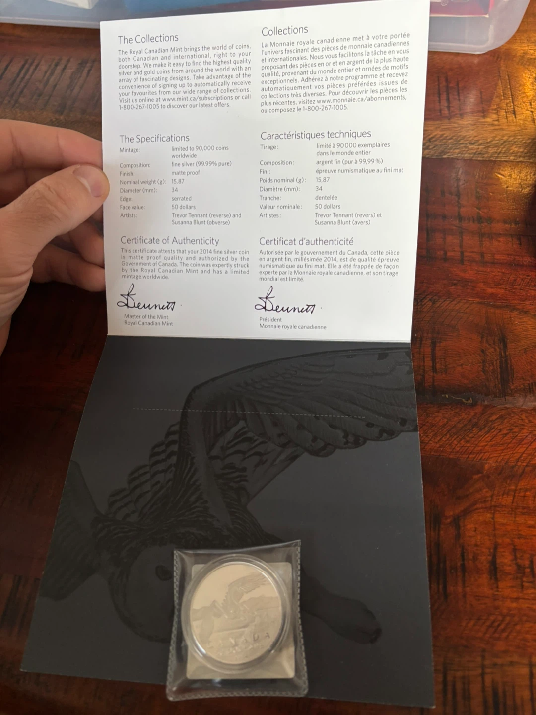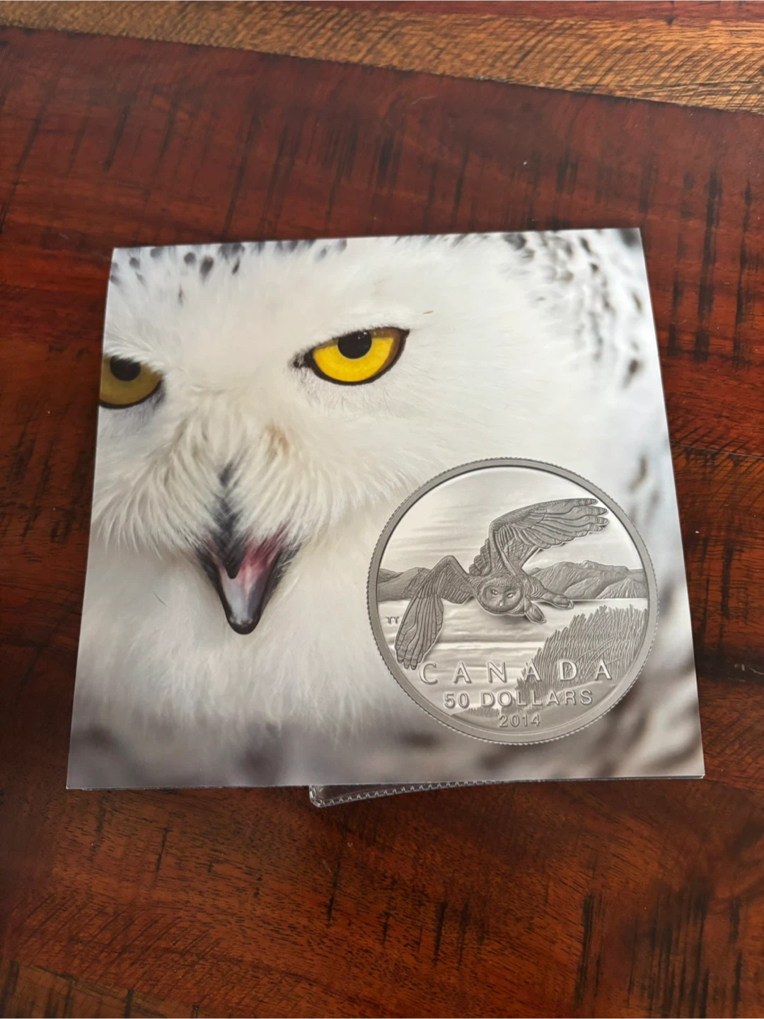 Selling a beautiful $50 coin from the Royal Canadian Mint featuring a Snowy Owl design from 2014! This coin is made of silver and has a matte proof finish. It contains 15.87 grams of silver and has a diameter of 34 mm.