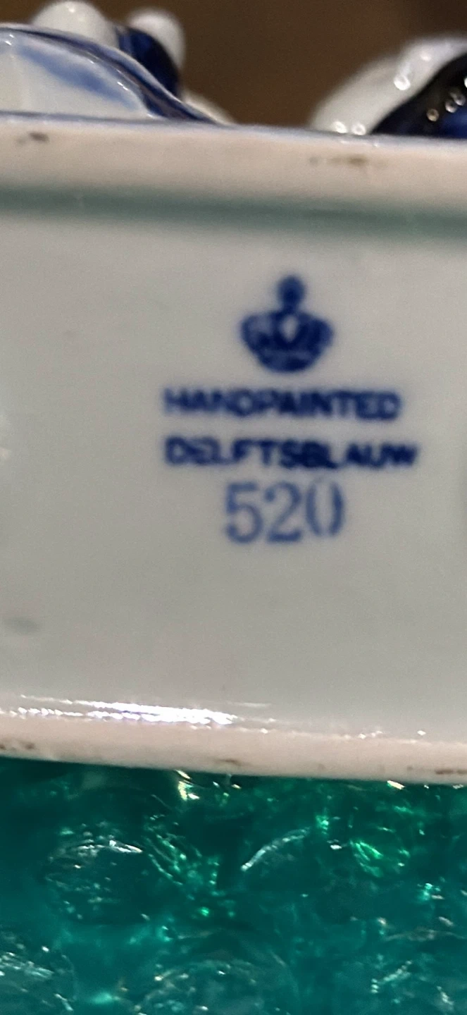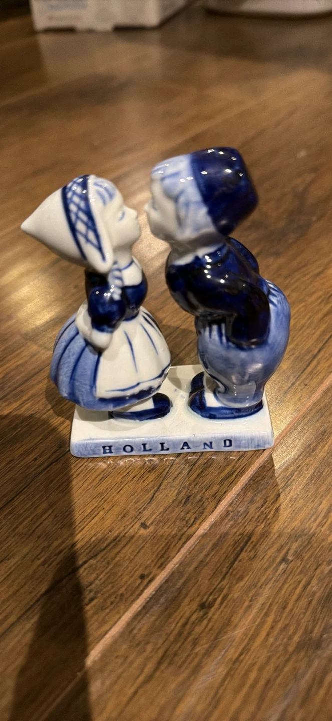 Selling a charming Delftsblauw Holland figurine of a kissing Dutch couple. It's handpainted and numbered 520. This piece would make a lovely addition to any collection or a sweet decorative item for your home