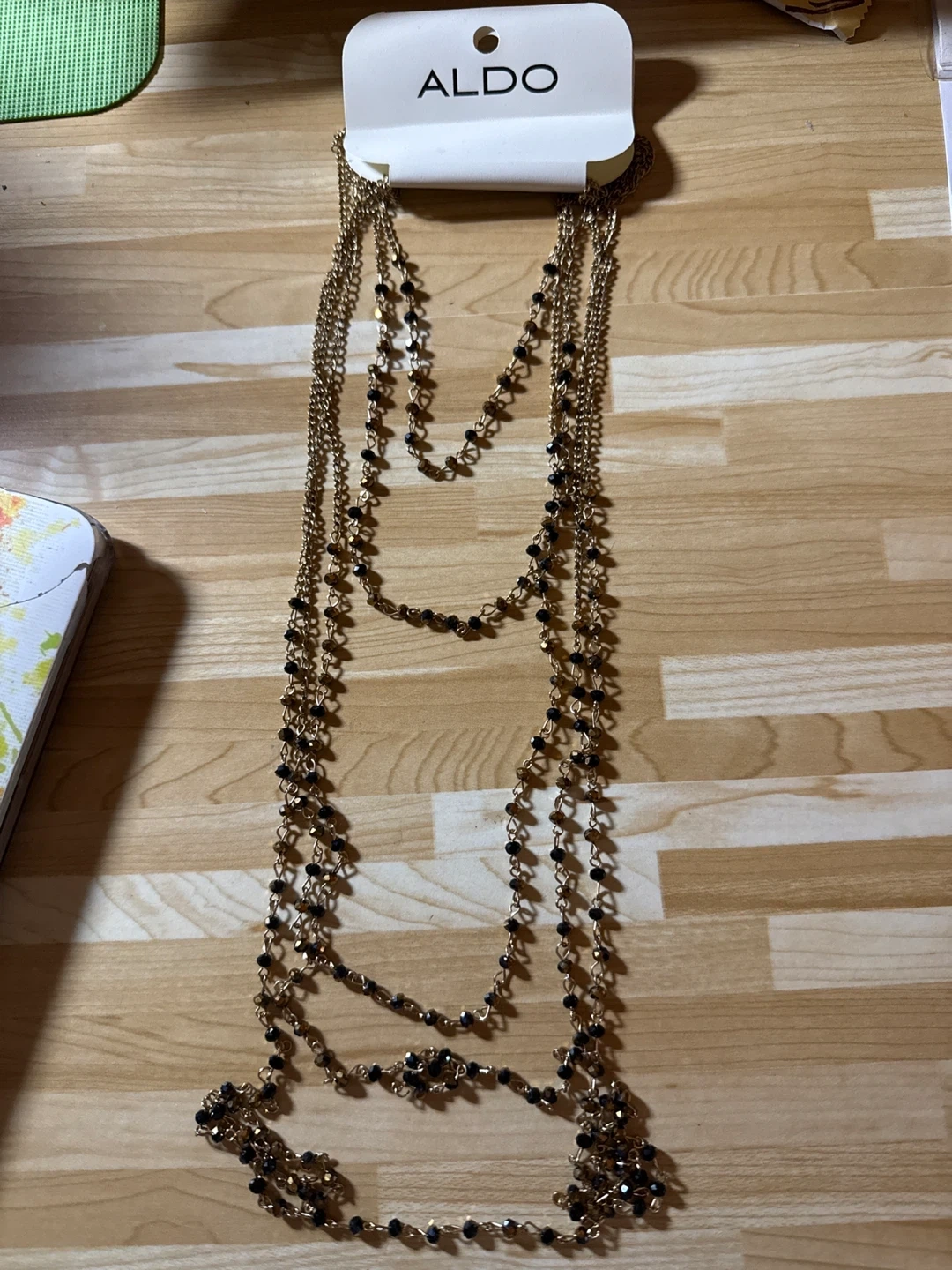 Gorgeous ALDO layered necklace featuring gold chains and black beads! It's in great condition and ready to add a touch of elegance to your outfit.