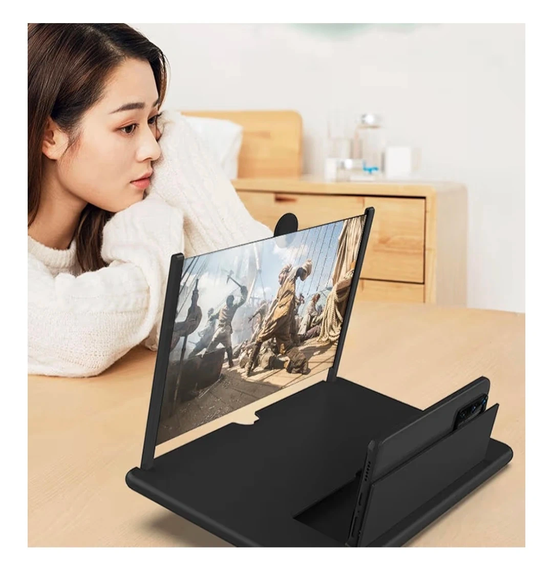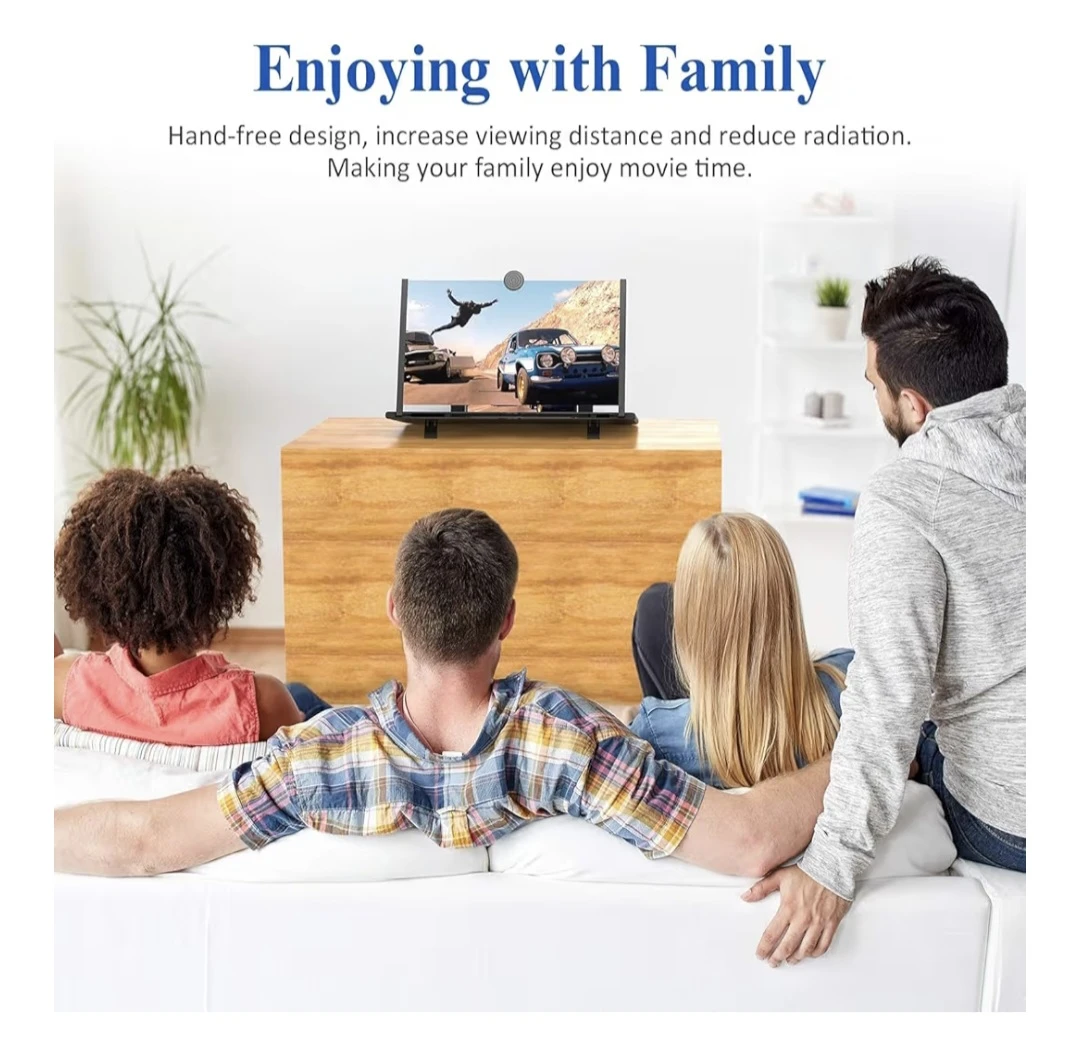 This New 10-inch black cell phone screen magnifier is compatible with all smartphones, offering a 3D HD movie viewing experience. It's in like new condition, perfect for enjoying your favourite content with family.