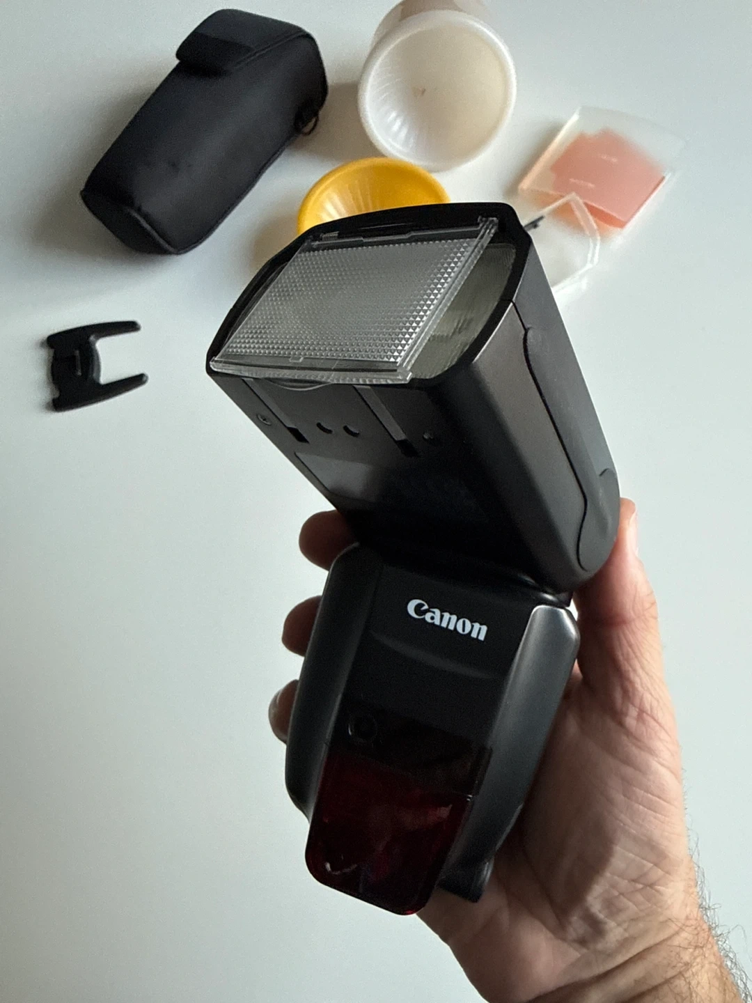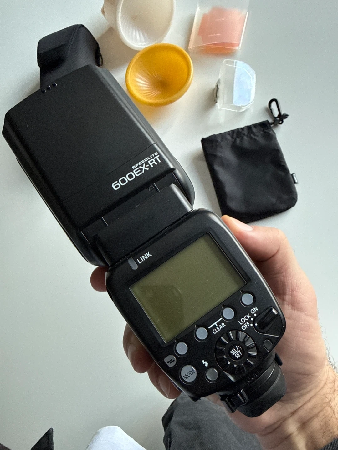 Selling a Canon Speedlite 600EX-RT flash. It's in new condition and comes with all the original accessories, including the carrying case plus Gary Fong dome. Perfect for any photographer looking to upgrade their gear.