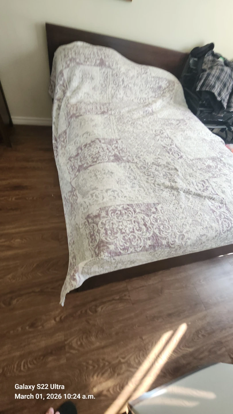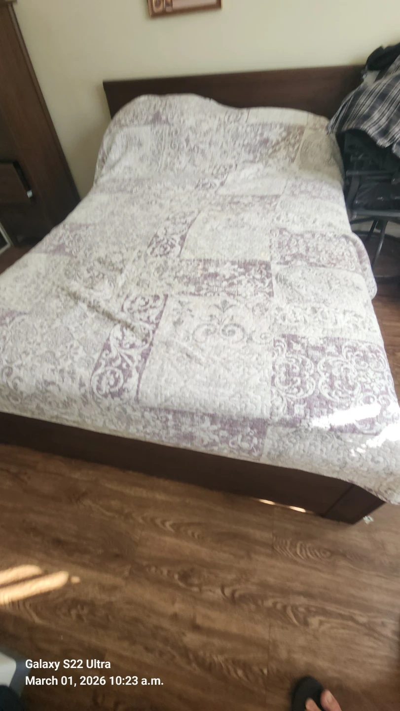 Selling a queen size bed frame and mattress. It's in good condition and features built-in storage drawers, perfect for maximizing space in small bedrooms.