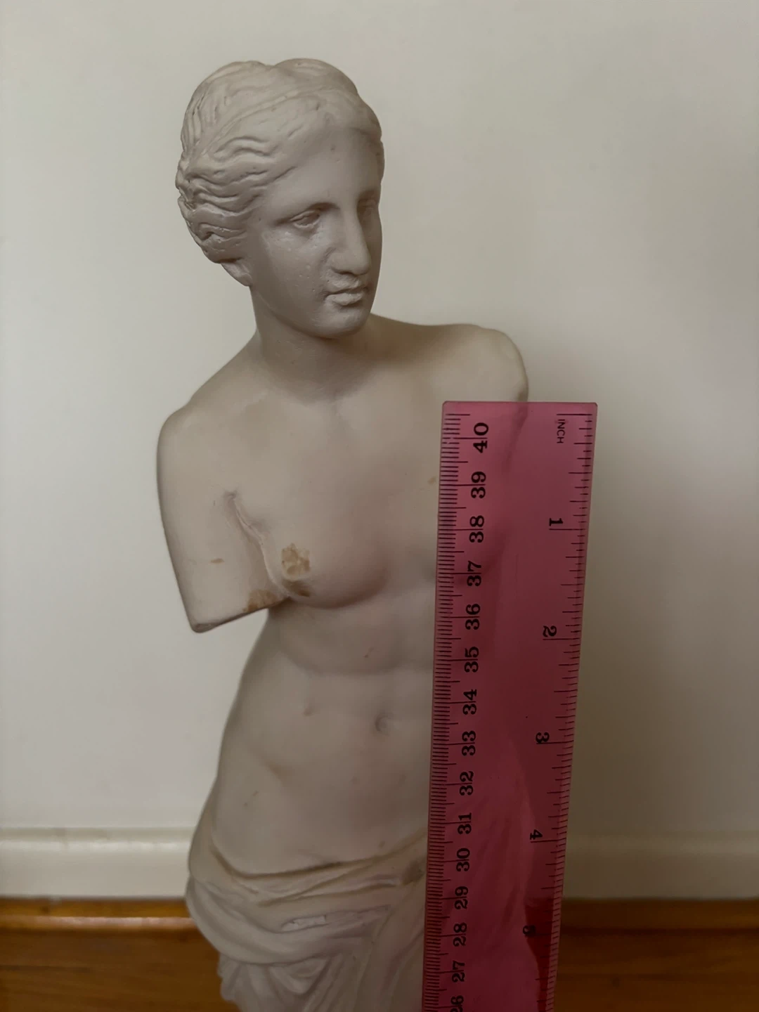Classic plaster reproduction of the iconic Venus de Milo. Adds a timeless, gallery-style look to any home or studio.