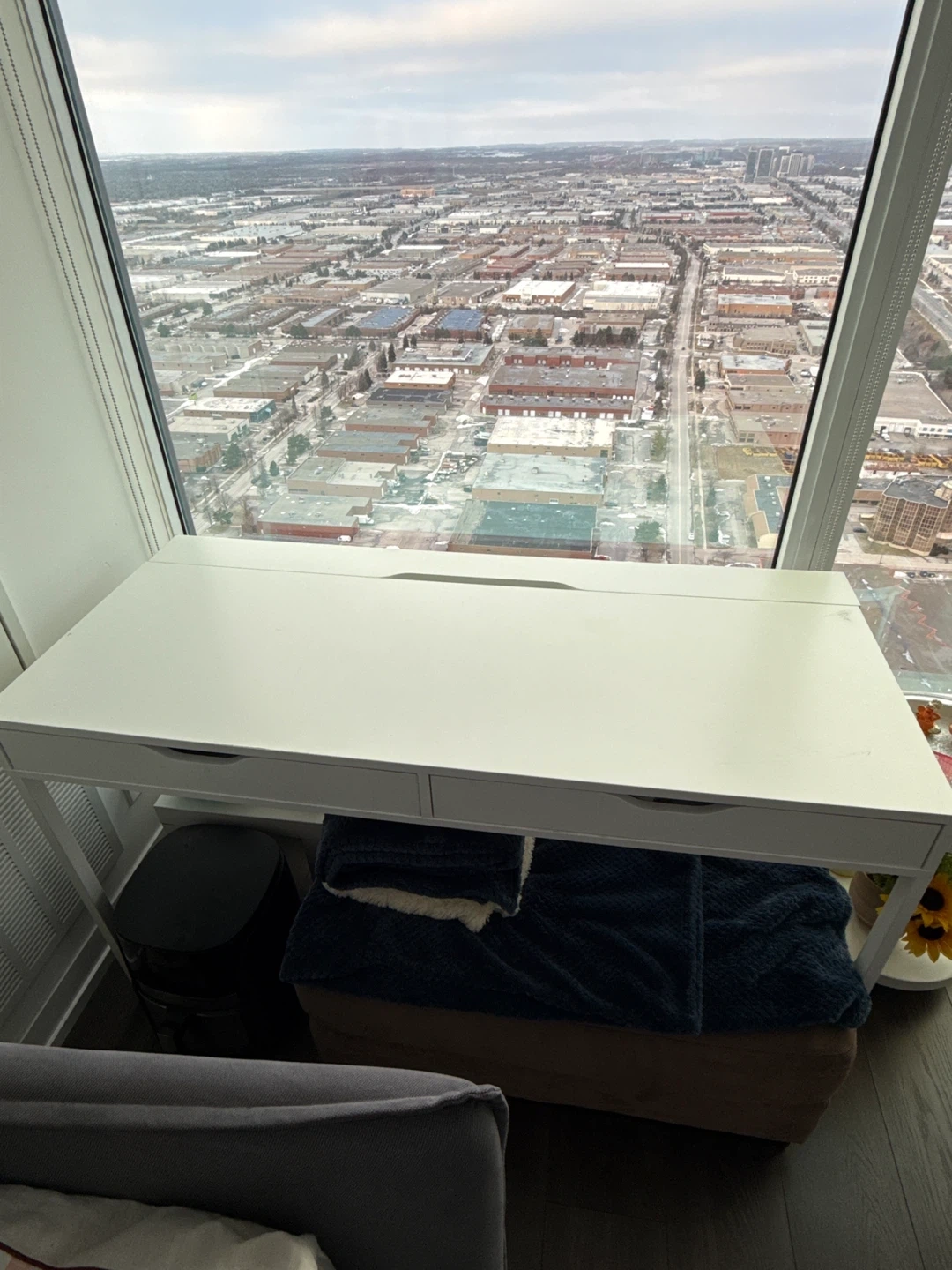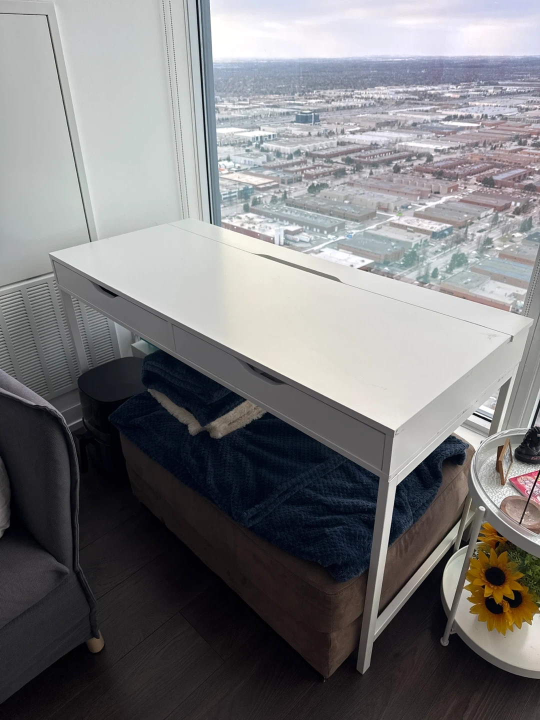 Selling a white IKEA Alex desk! It's in great shape and ready for a new workspace. The dimensions are approximately 100cm wide, 48cm deep, and 76cm high. I bought this for $179
