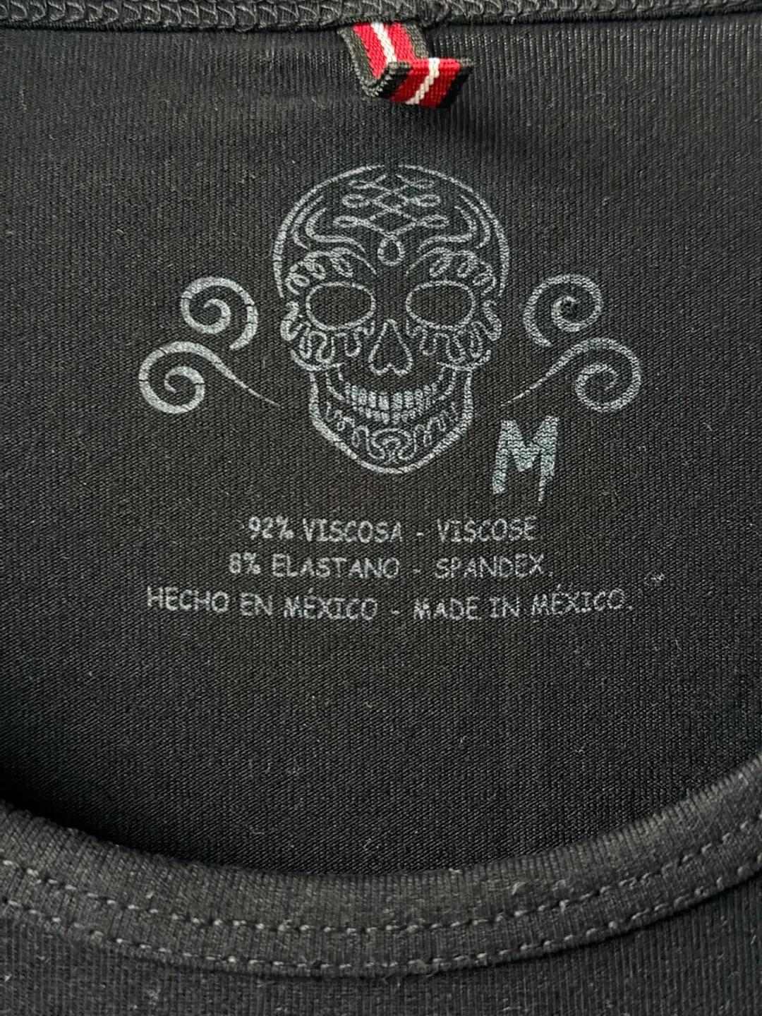 !Ay Güey! Black T-Shirt with Multicolor Skull Design - Size M