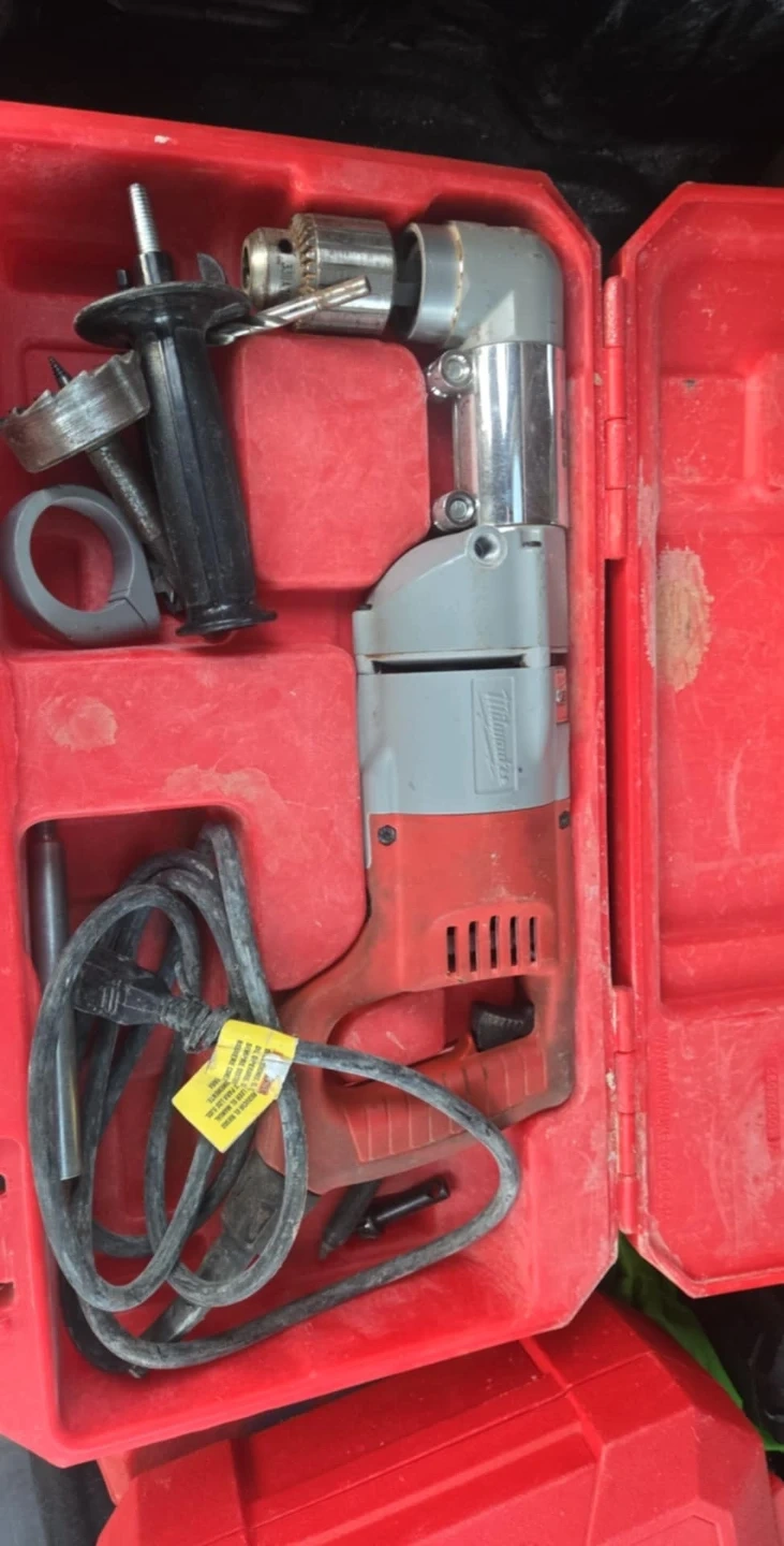 Selling a Milwaukee right angle drill. It comes with its original red case and some accessories as pictured. Great for getting into tight spaces!