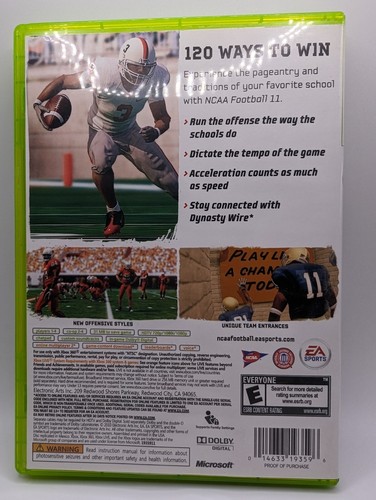 NCAA Football 11 for Microsoft Xbox 360 is a must-have for any football fan. With realistic gameplay, updated graphics, and new features such as TeamBuilder and ESPN Broadcast Package, this game will provide endless hours of entertainment.