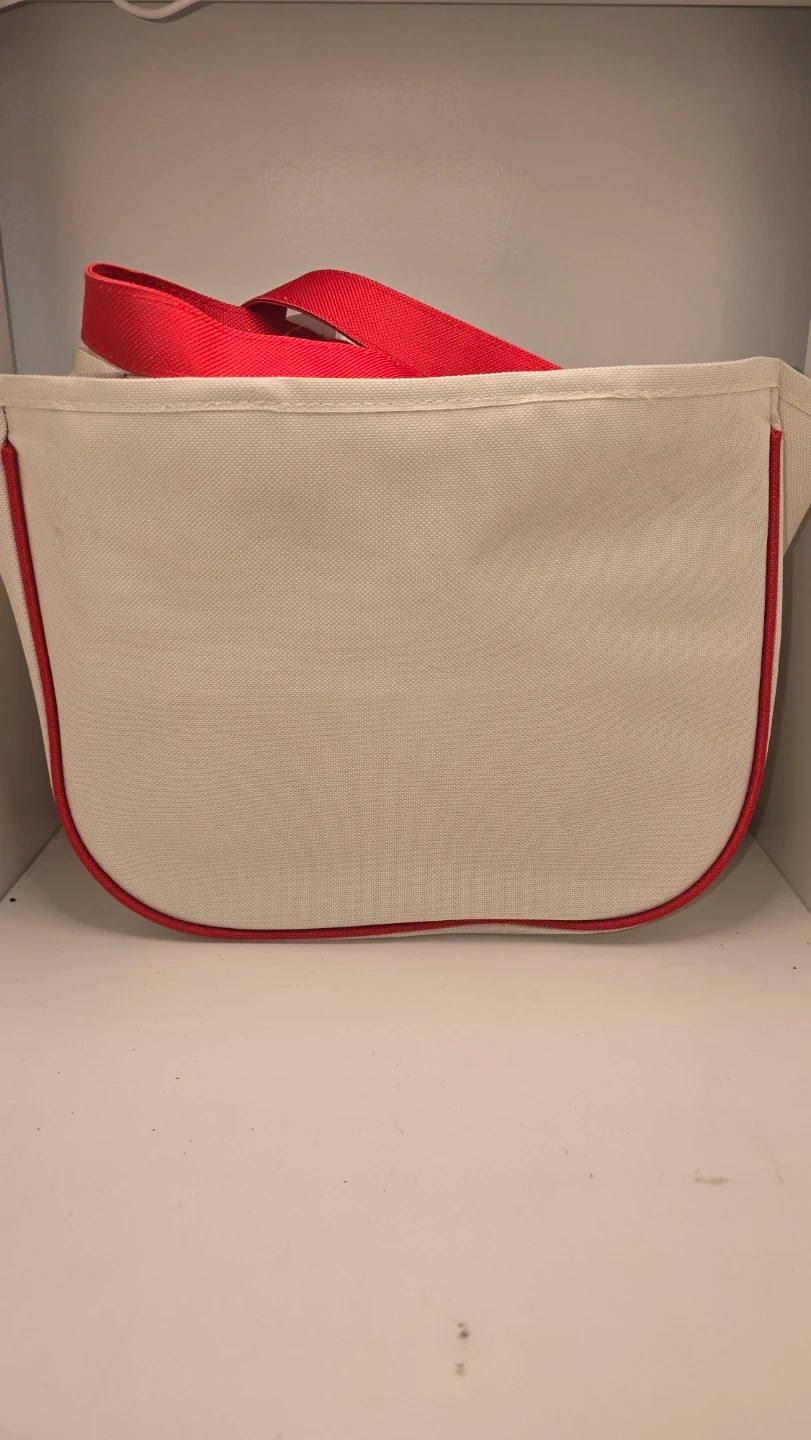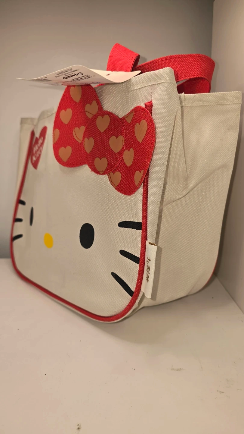 Super cute Hello Kitty tote bag! Perfect for carrying your everyday essentials with a touch of kawaii style. The bag features a charming Hello Kitty design with a red trim and handles. It's a fun and practical accessory for any Hello Kitty fan