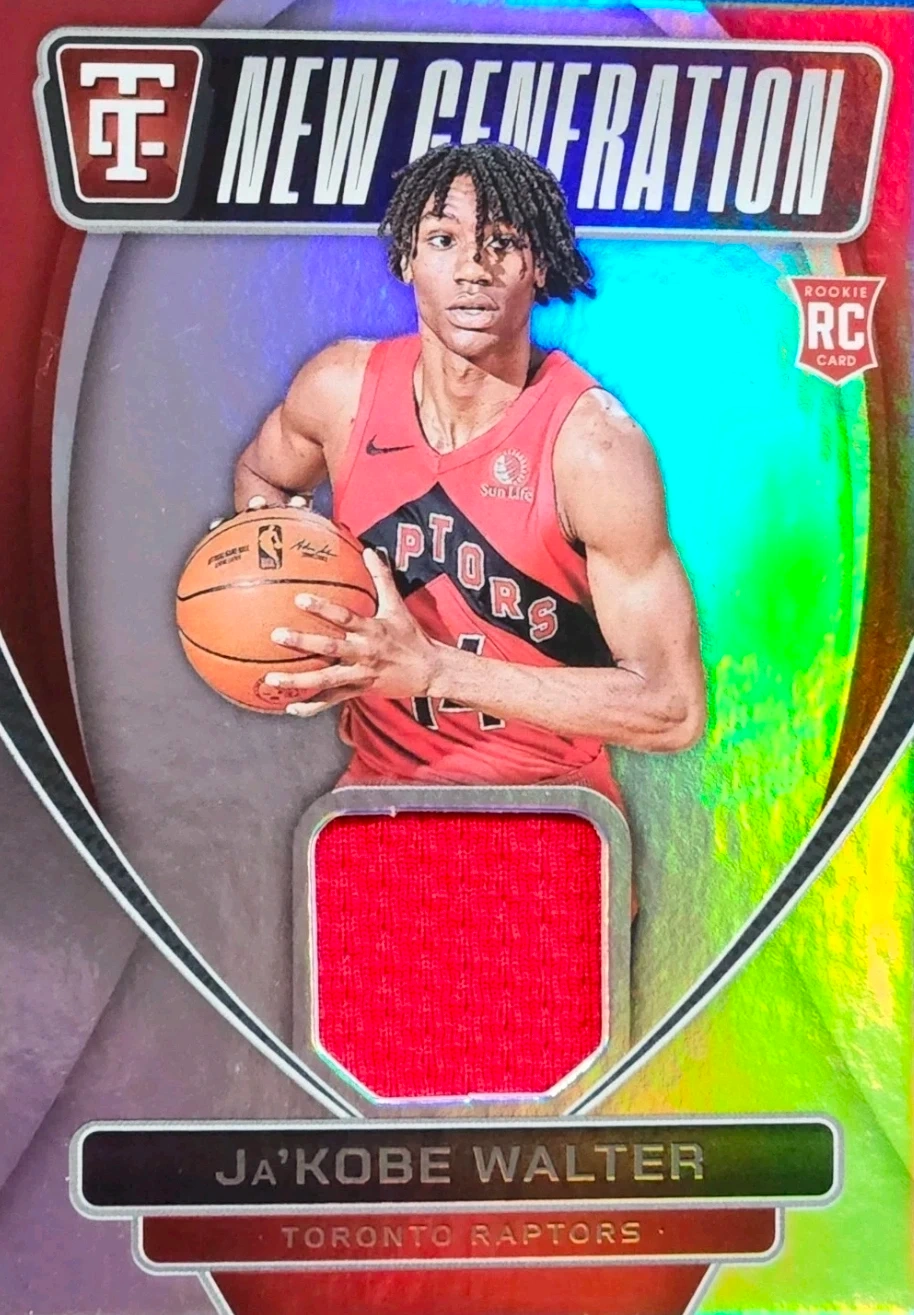 Selling a Ja'Kobe Walter Toronto Raptors rookie card from the New Generation series. This card features a piece of a jersey. Great for any basketball fan or card collector!