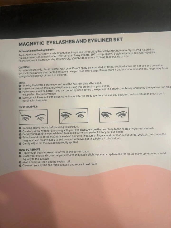 Brand new magnetic eyelashes and eyeliner set. Still sealed in original packaging. Includes instructions on how to apply and remove.