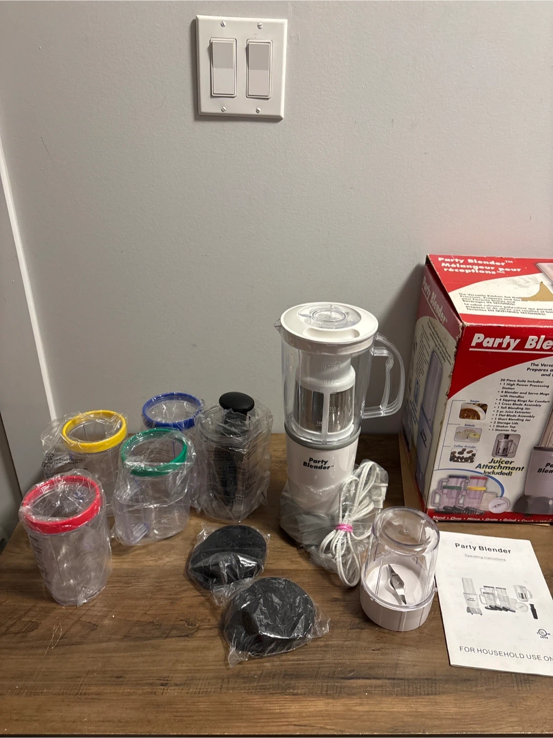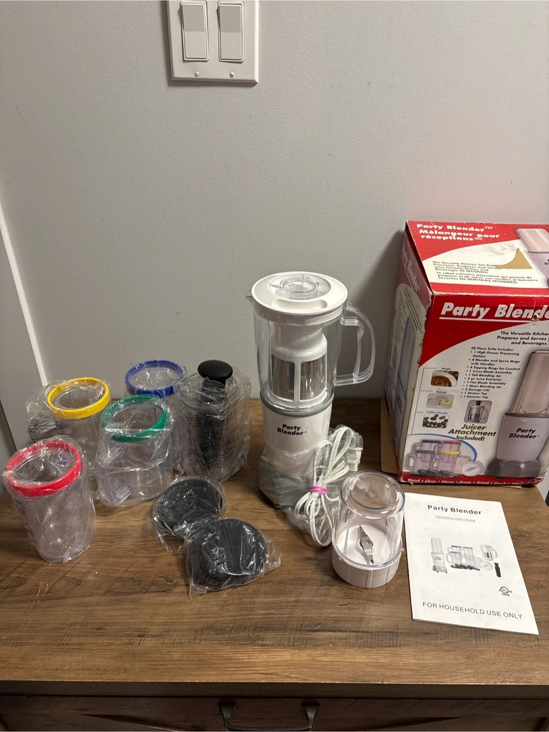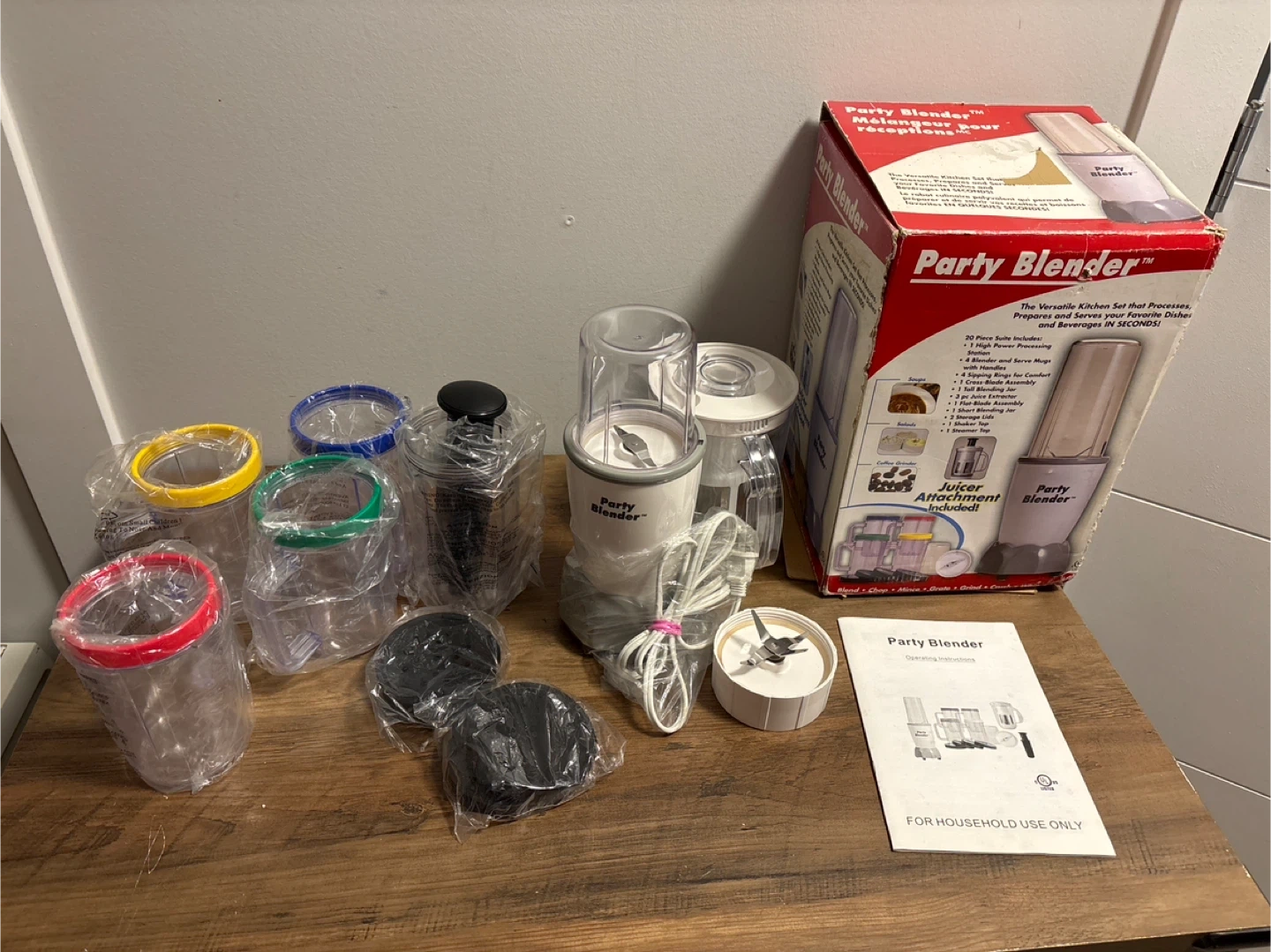 Selling a Party Blender 20-piece kitchen set! This versatile set processes, prepares, and serves your favourite dishes and beverages in seconds. Included are:
