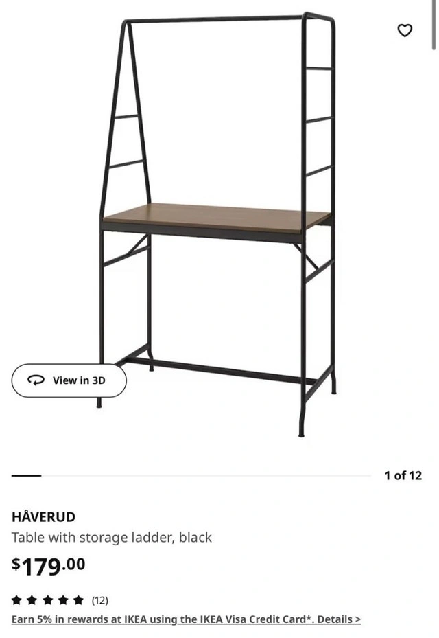 IKEA HÅVERUD Table with Storage Ladder | Black. Used – Like new condition. Originally sold for $179 + tax. Selling now for $120. Clean and sturdy. Metal frame with wood tabletop and built-in ladder storage. Great as a desk or workspace. Got a new desk, no longer need.