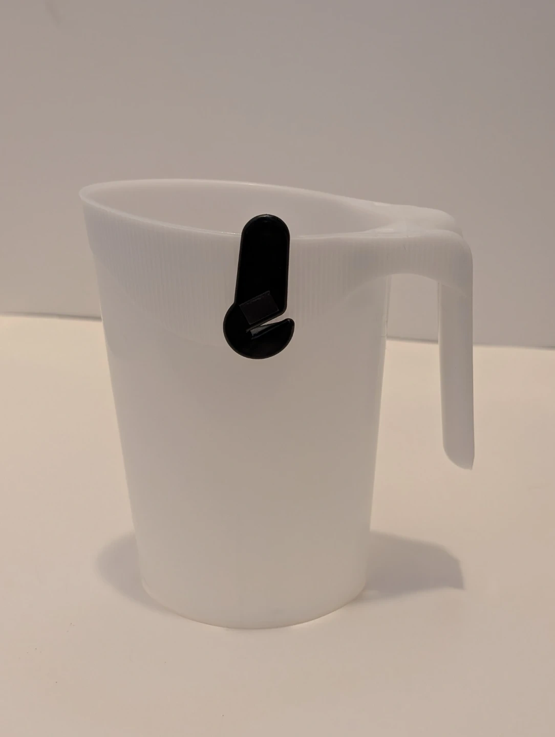 Well, it's also handy to have a milk-bag opener, which I'm including in this deal. You can clip it to the side of the pitcher or magnetically stick to the refrigerator. No need to fumble around for those misplaced scissors when you have one of these perpetually handy for all your milk-bag opening needs!