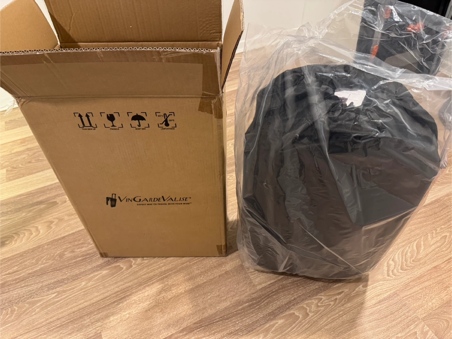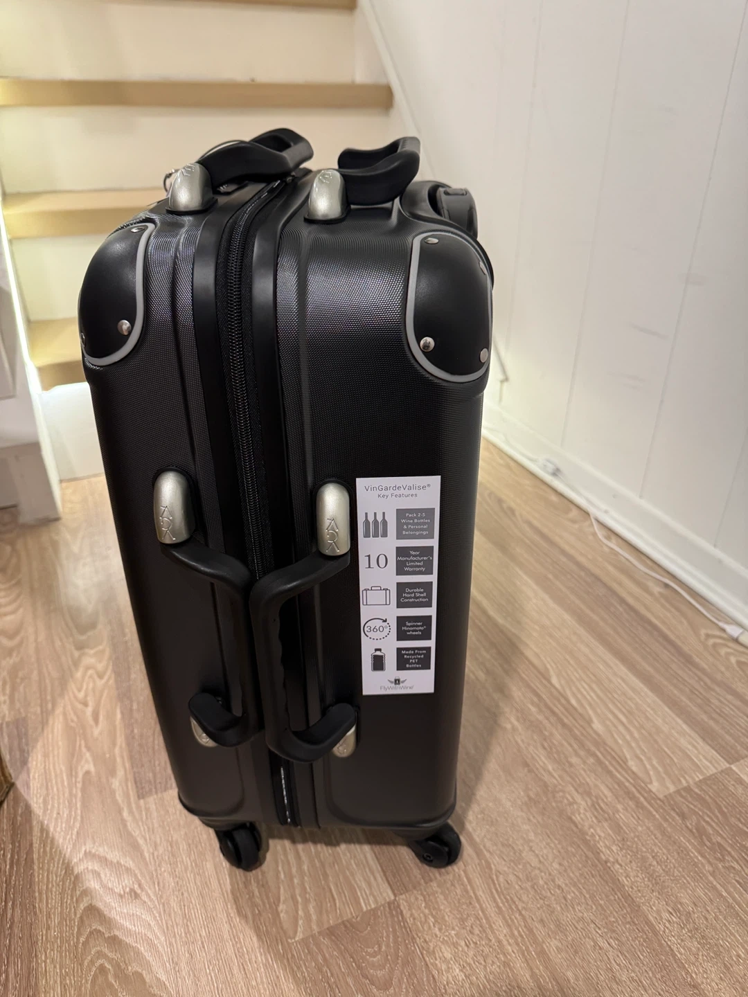 Selling a brand new authentic VinGardeValise Grande 2-5 bottle wine suitcase in black - Original Price 399 CAD but selling with 220 CAD! Got it as a present.