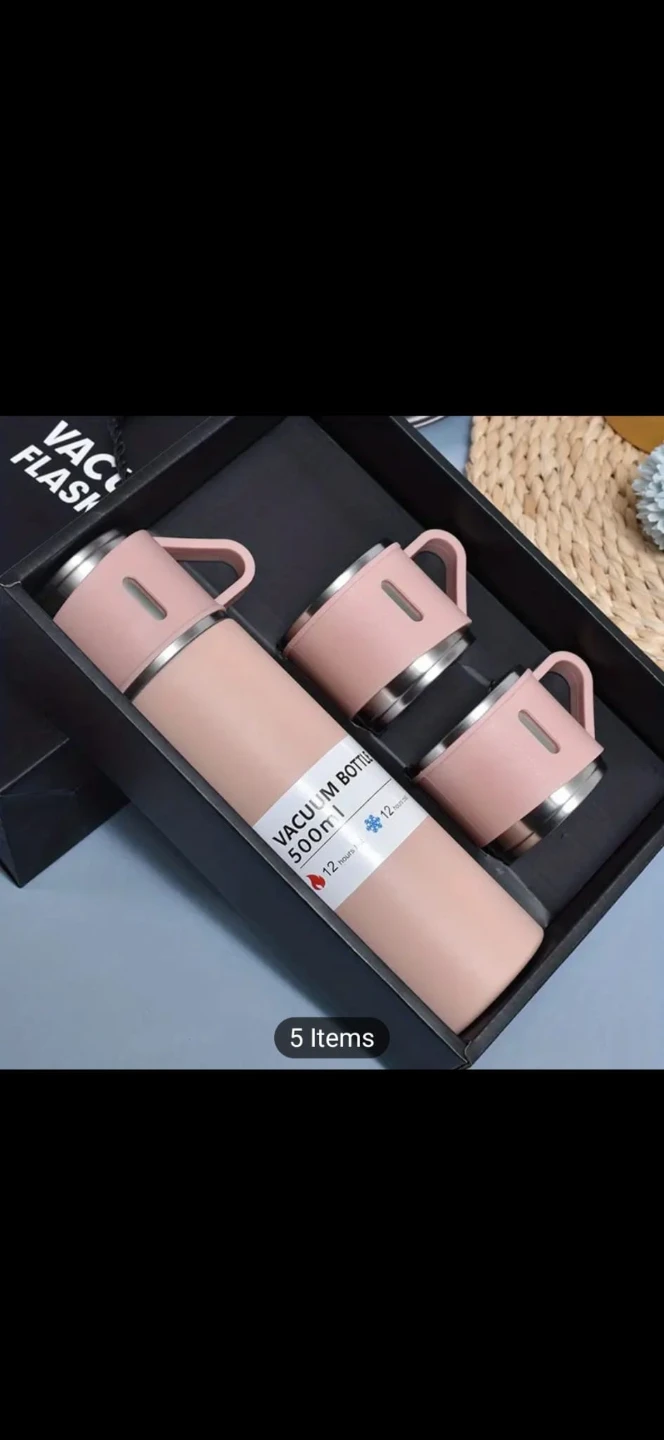 This set comes with a 500ml vacuum flask bottle and two matching cups, all in a lovely pink colour. It's designed to keep your drinks hot or cold for up to 12 hours. The set is brand new and comes in its original box, making it a great gift idea or a treat for yourself!