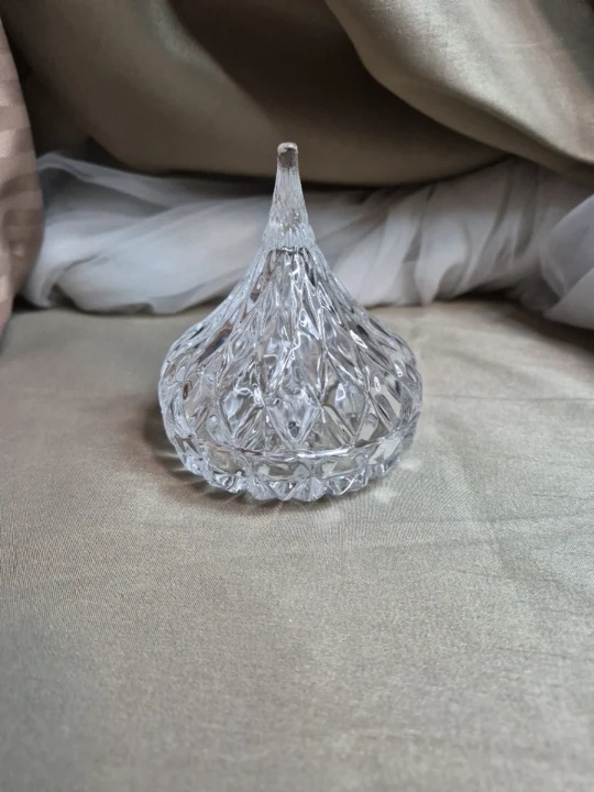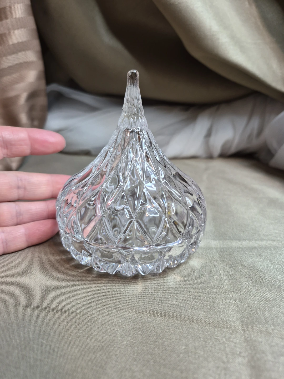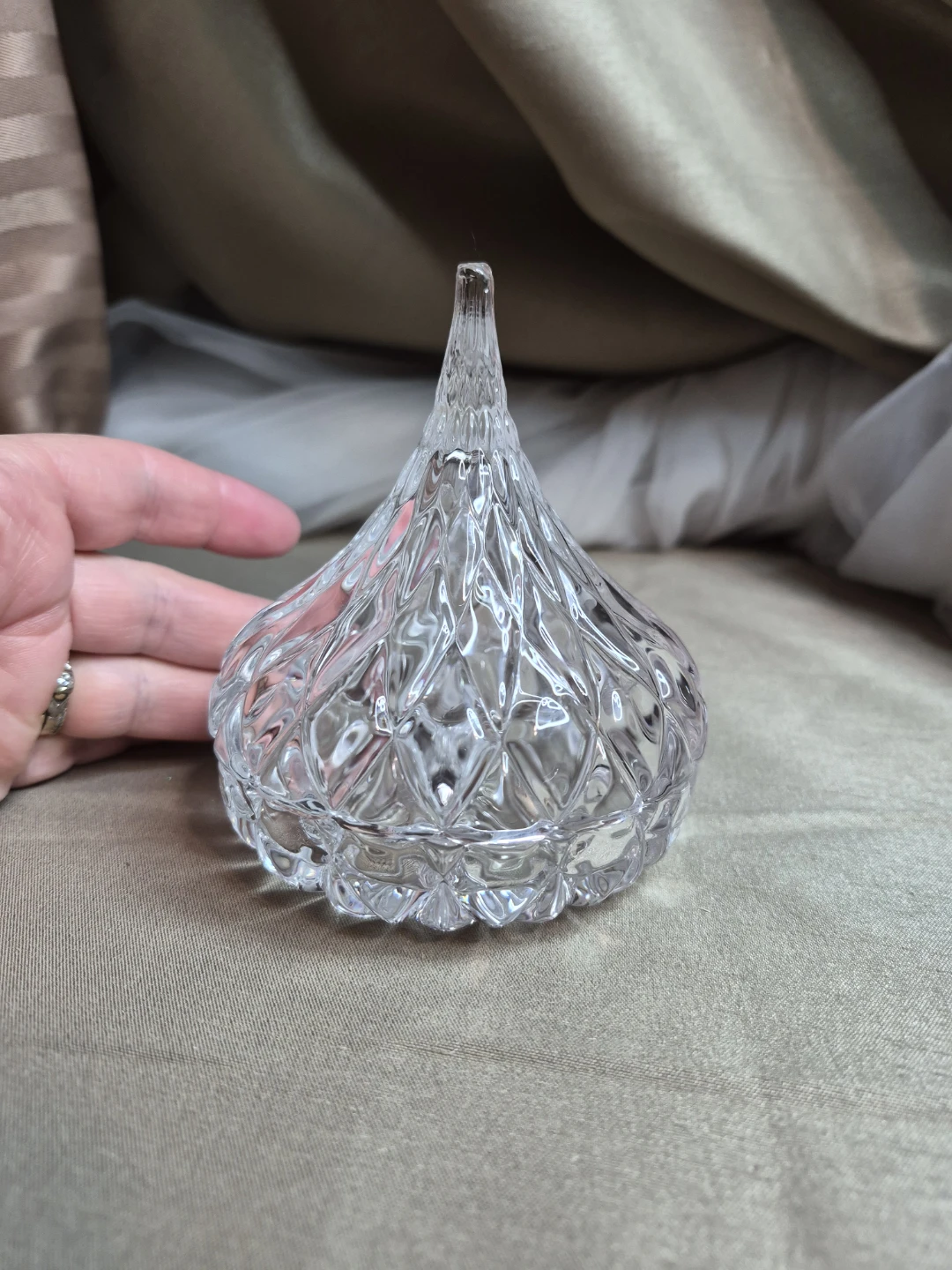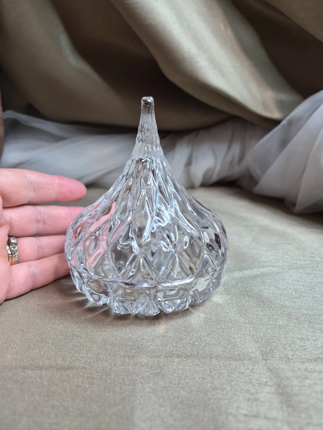 So Cute Hershey's Kiss 2 pc Glass Ring Trinket Dish & Cover 4" x 3 1/2" Excellent Condition please see all pictures