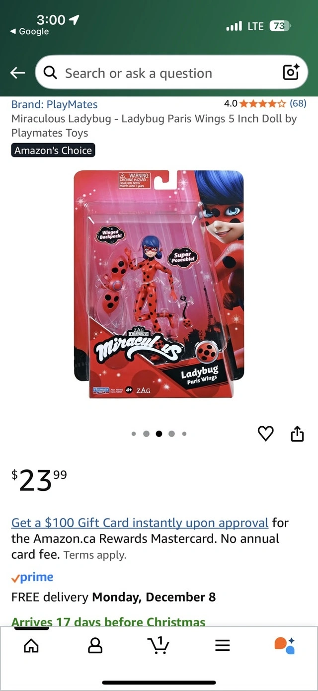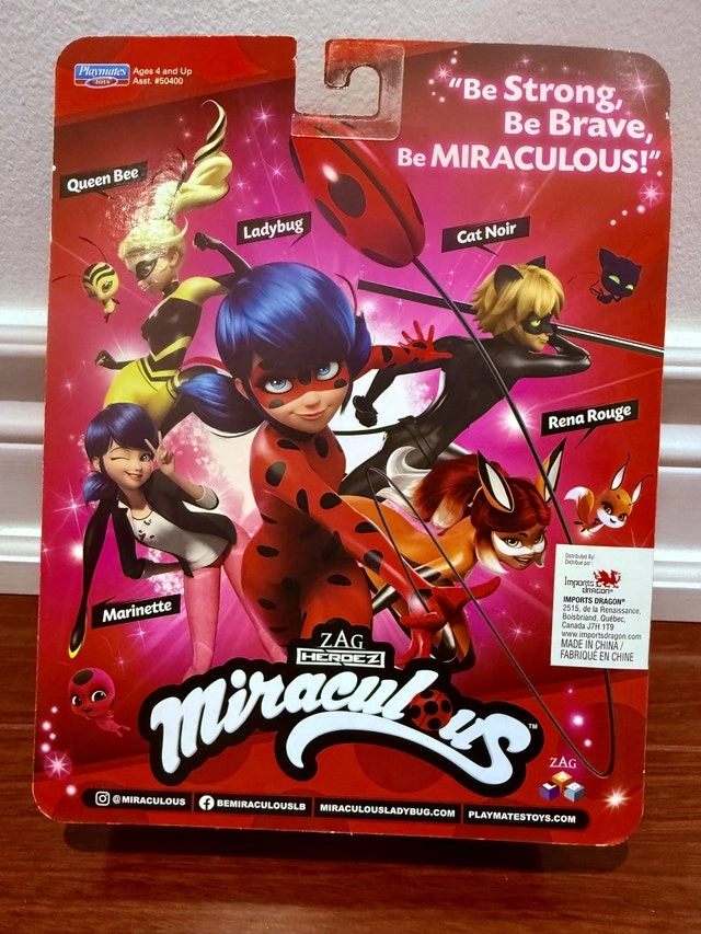 This is a new Miraculous Ladybug Paris Wings doll, still sealed in its original packaging! This super-poseable doll comes with a winged backpack accessory, perfect for any fan of the series. Original price is $23.99 plus tax. Brand: Playmates. Character: Ladybug. Series: Miraculous: Tales of Ladybug & Cat Noir. From pet and smoke free home. Pick up at Creditview and Eglinton in Mississauga.