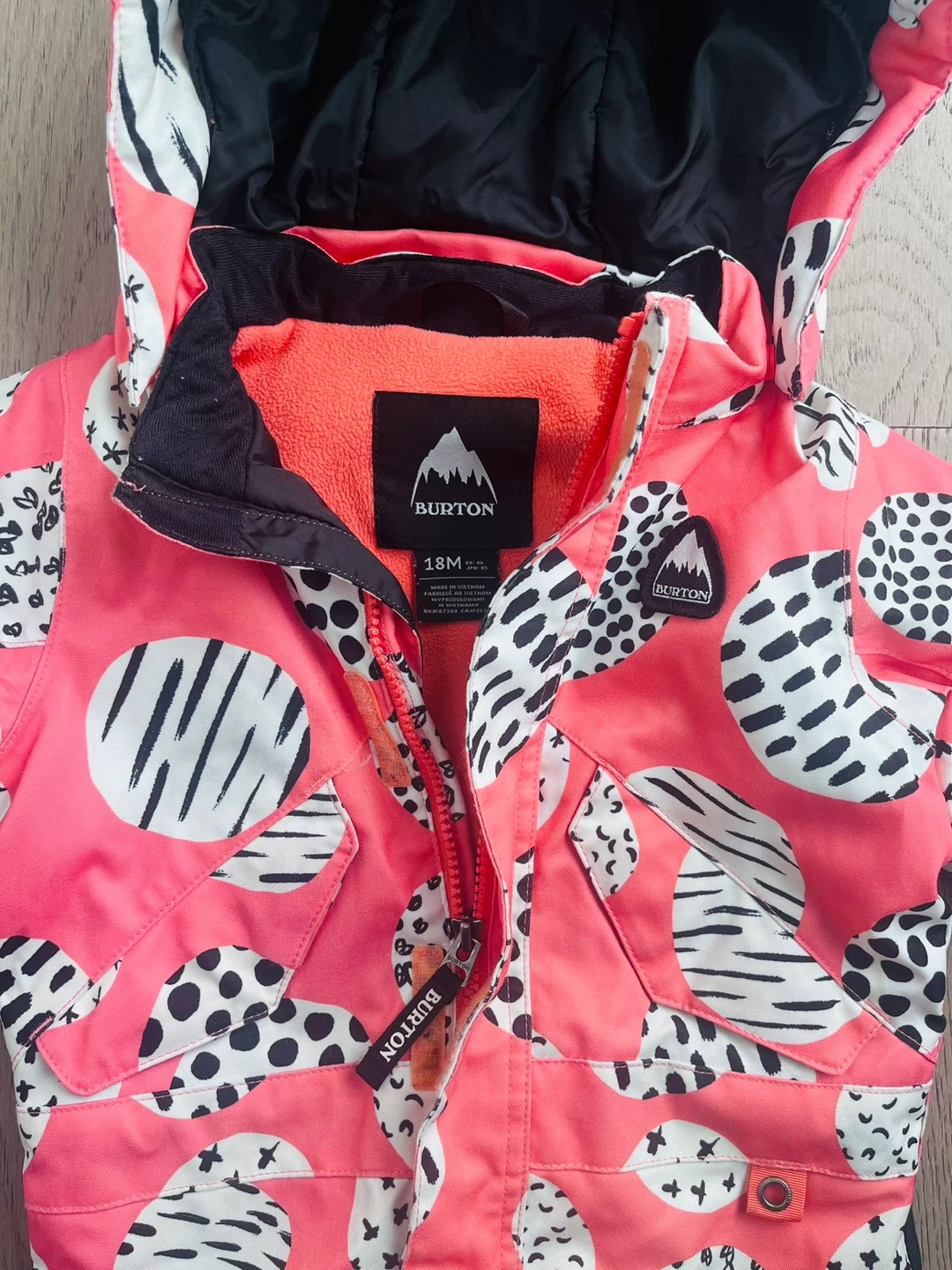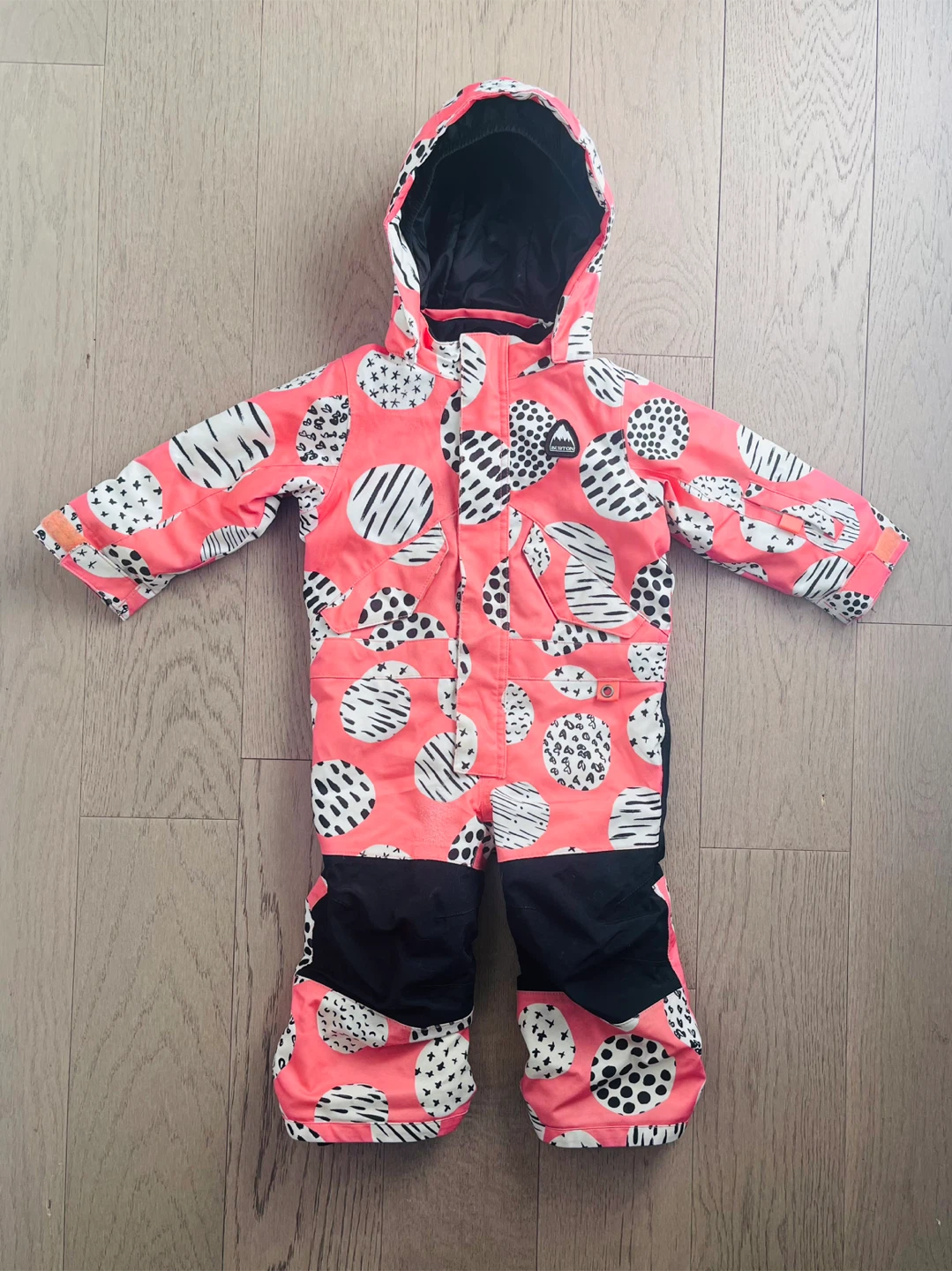 Keep your little one warm and dry this winter with this Burton performance snowsuit! “Doodle dot” pattern. It's size 18M and runs a little large. Burton toddler snowsuits are extendable in arms and legs in the inner lining so that the suit can grow with the child. Please note that the arms have been extended but the legs are still stitched up (ie. is in original shorter length - see photo with red stitching inside). This is easy to release if your child has longer legs. The inside tag has my child’s name on it but you can sticker over this or there is lots of additional room on the tag to write your own child’s name. Amazing snowsuit for hitting the slopes or just playing in the snow this winter season.