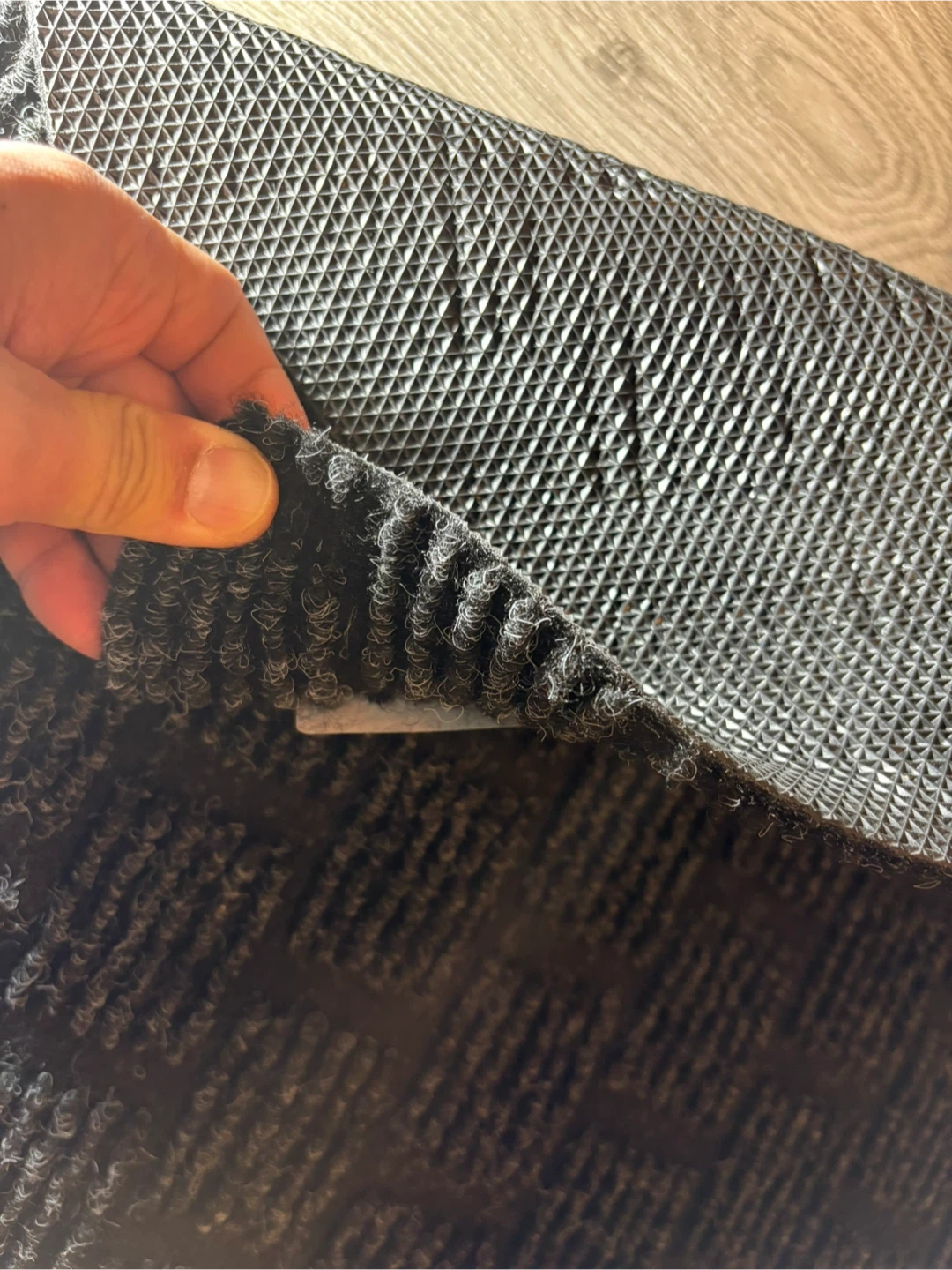 Selling a brand new Nordic entrance mat! It measures approximately 91 cm x 122 cm (36 in x 48 in). The top is 100% polyester, and the backing is 100% thermoplastic rubber. This mat was made in Canada with imported materials and is waterproof