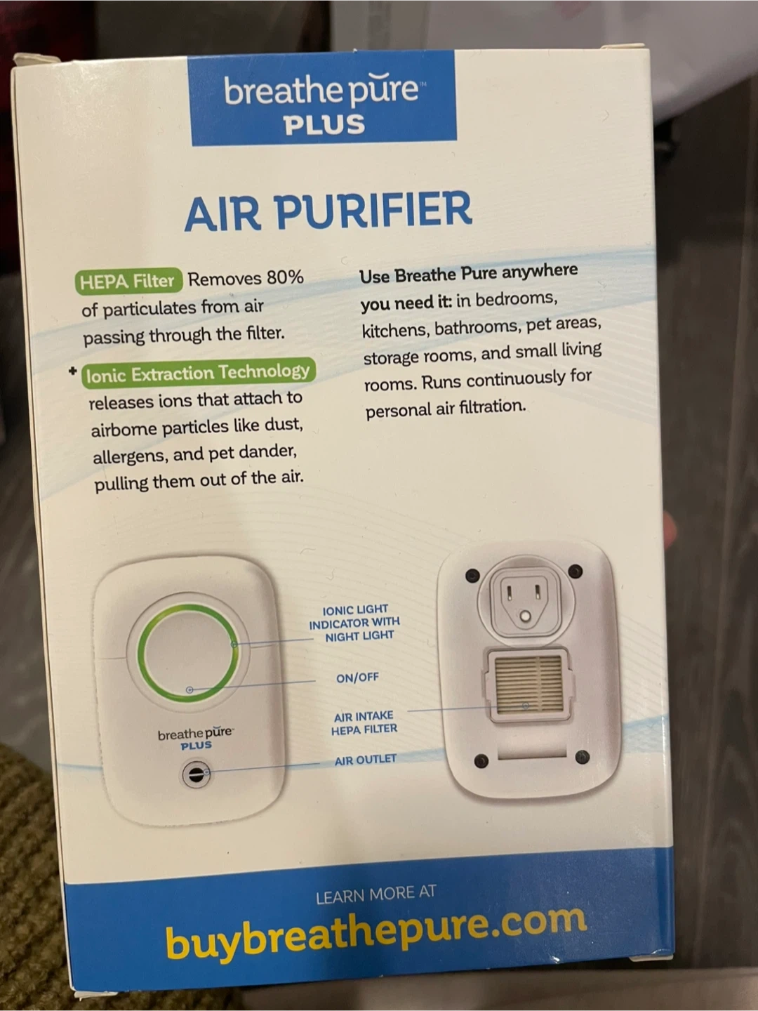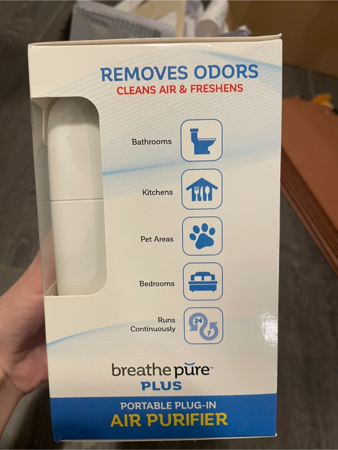 Brand new Breathe Pure Plus portable plug-in air purifier - in its original packaging.