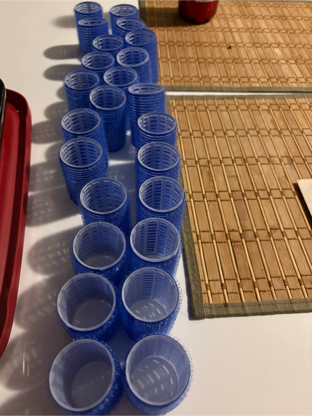 Selling a set of 24 blue hair rollers! Great for adding volume and creating curls at home. They're never used and ready for a new owner.