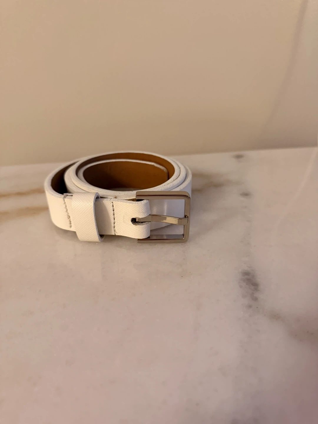 Selling a stylish white belt.