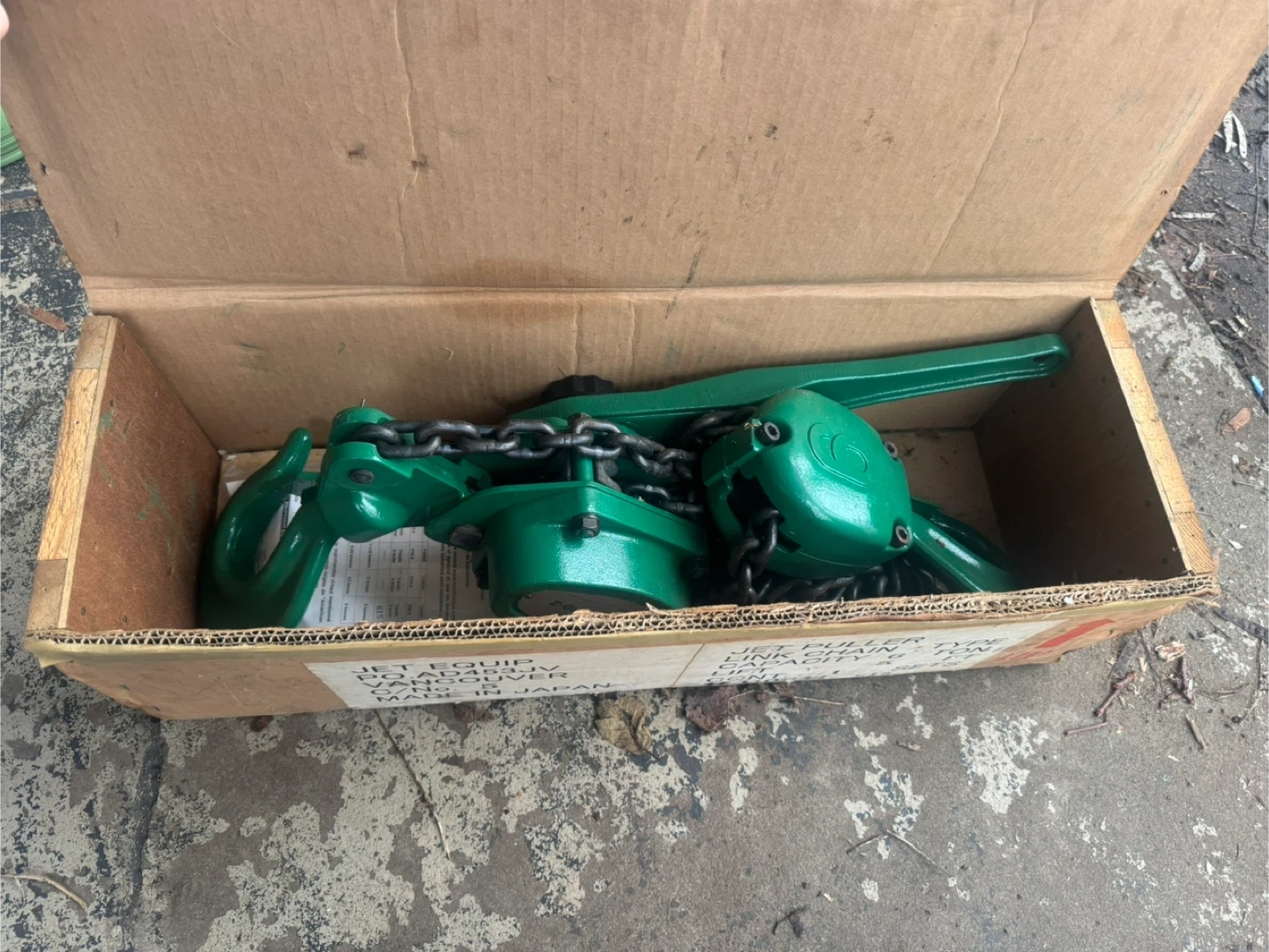 Selling a JET comealong, with a capacity of 6 tons. It's in its original box, and it's made in Japan. Chain length 5’ make an offer.