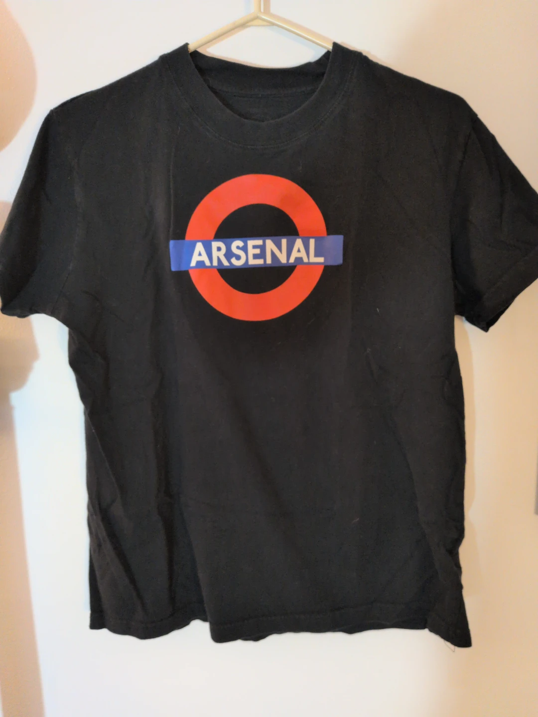 Selling a black Arsenal t-shirt, size Medium. Perfect for any Gunners fan! #soccer #football