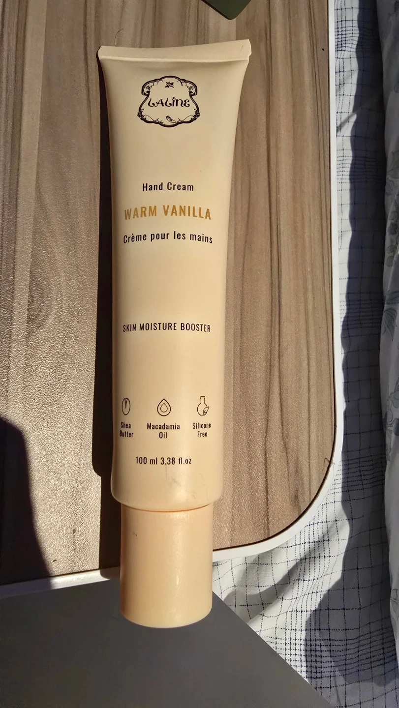 Laline Warm Vanilla Hand Cream is a skin moisture booster that comes in a 100 ml size. It contains shea butter and macadamia oil, and is silicone-free. Perfect for keeping your hands soft and moisturized!