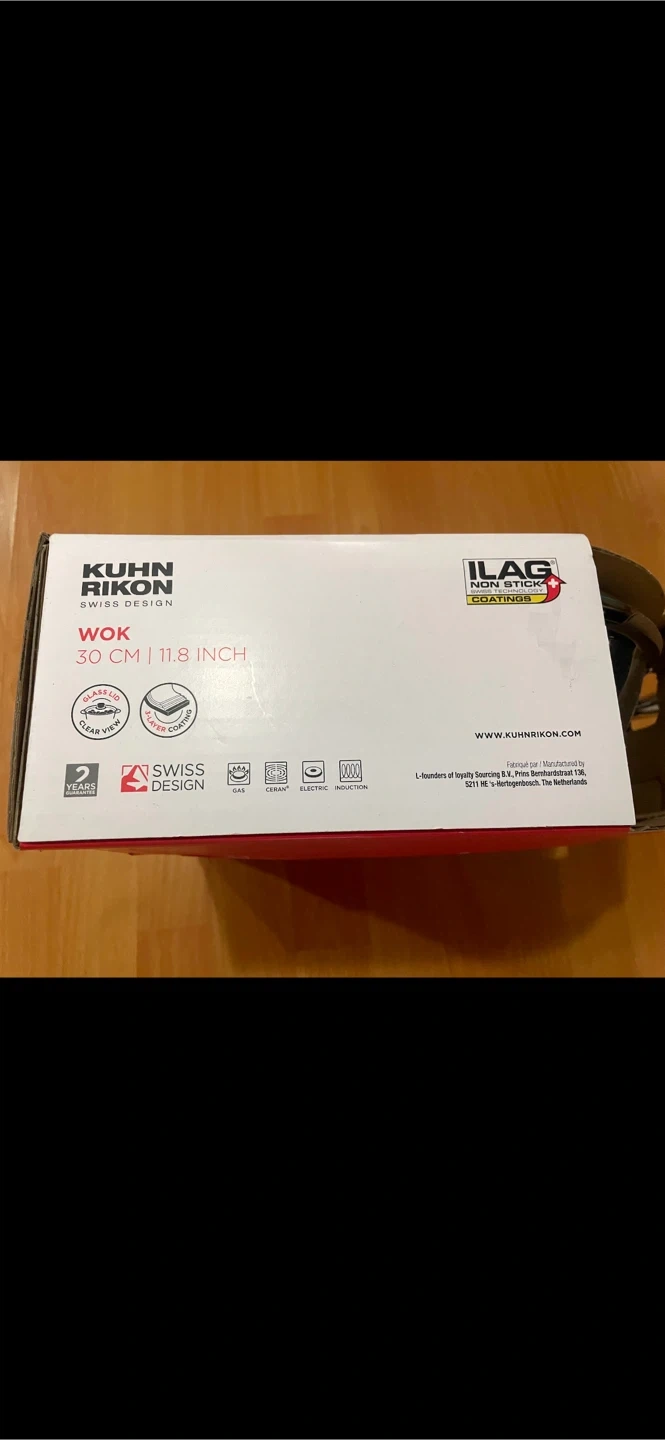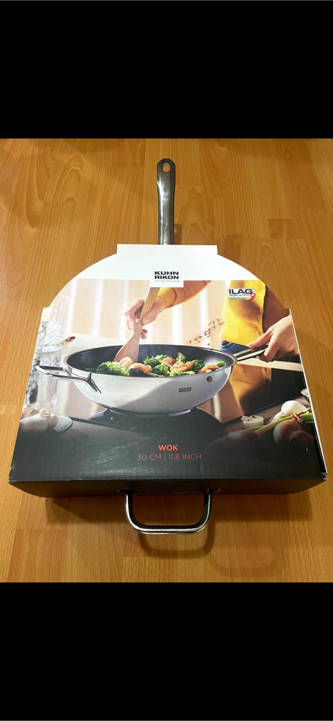 Selling a Kuhn Rikon wok, sized at 30 cm or 11.8 inches! It features a Swiss design and ILAG non-stick coating. This wok is suitable for gas, ceramic, electric, and induction cooktops. It also comes with its original box
