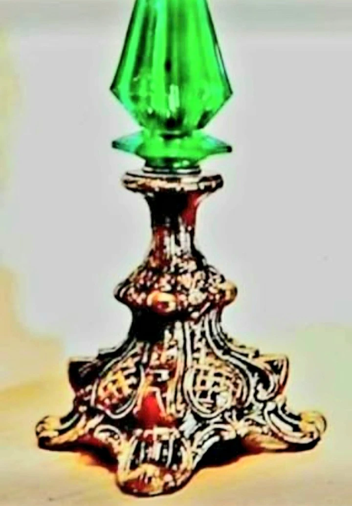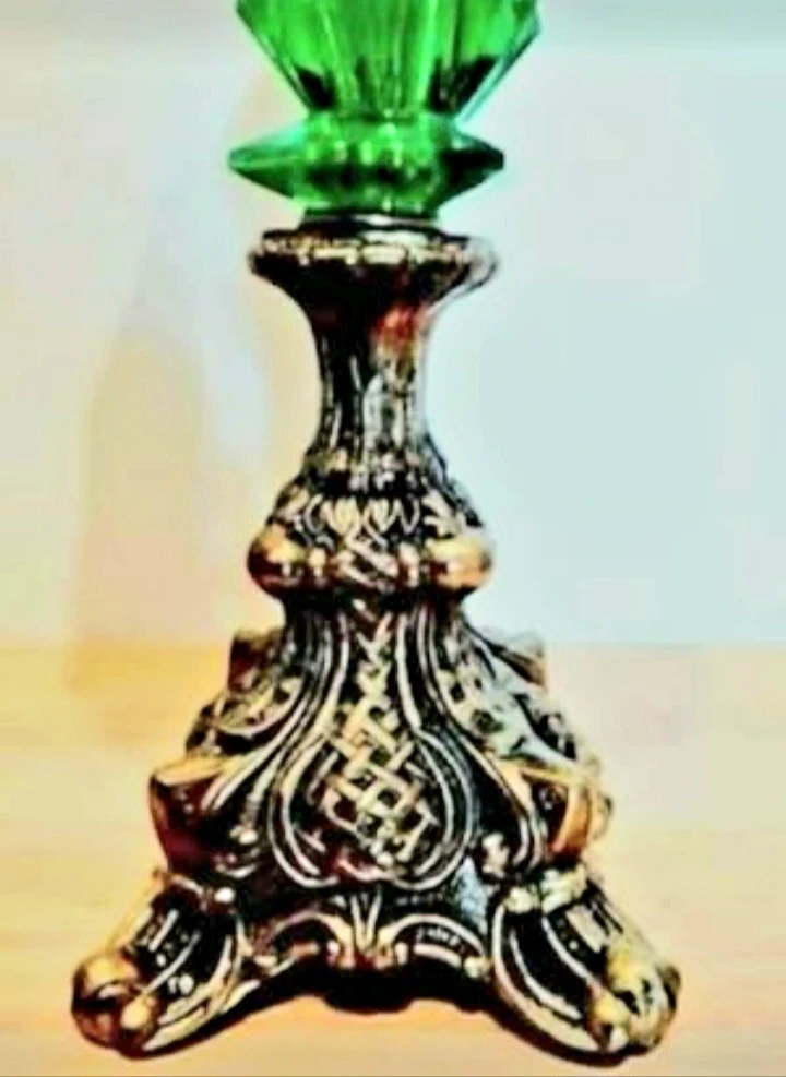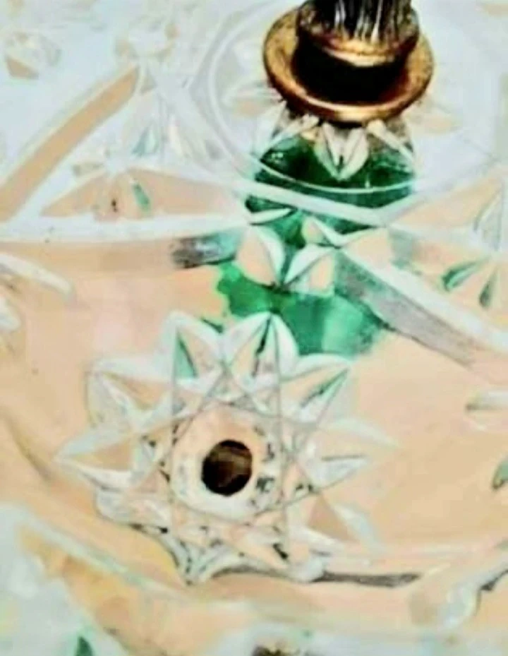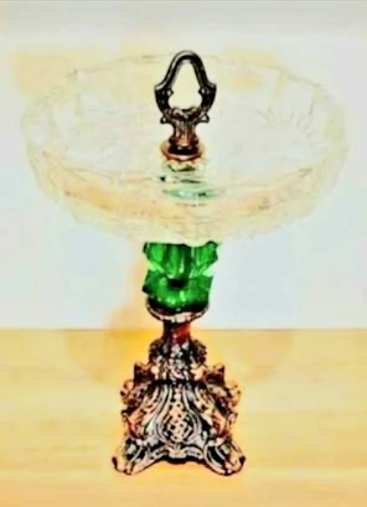 This Stunning Unique, Antique Italian Tall Bronze and Crystal Elevated Dish will definitely catch the eye. The piece features a clear crystal dish with Starburst Patterns, a Green Glass Centre, and an ornate Bronze Base.