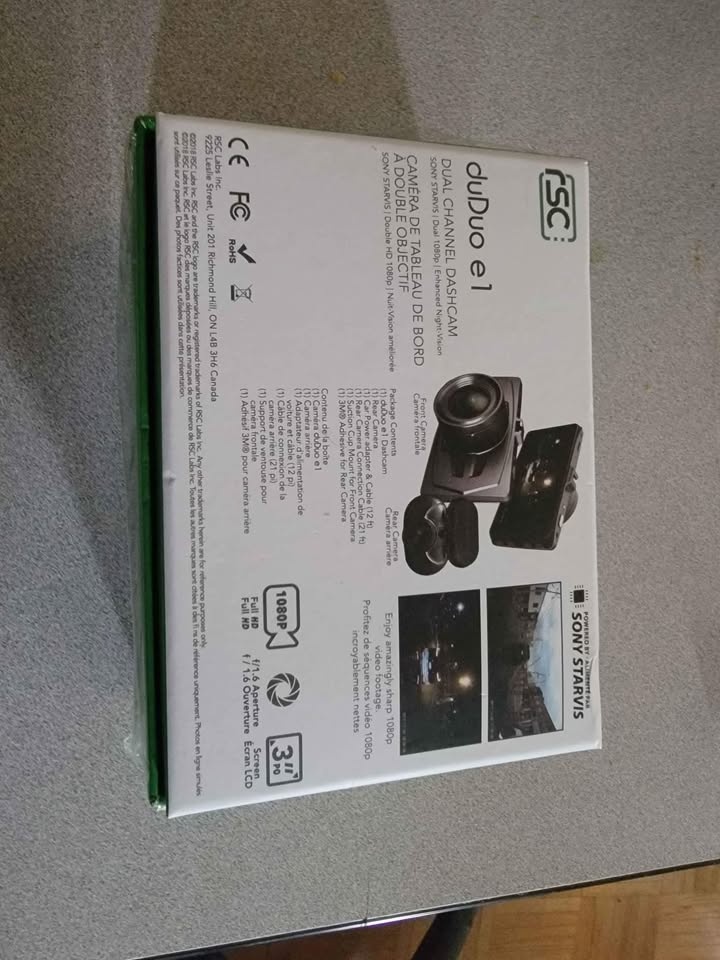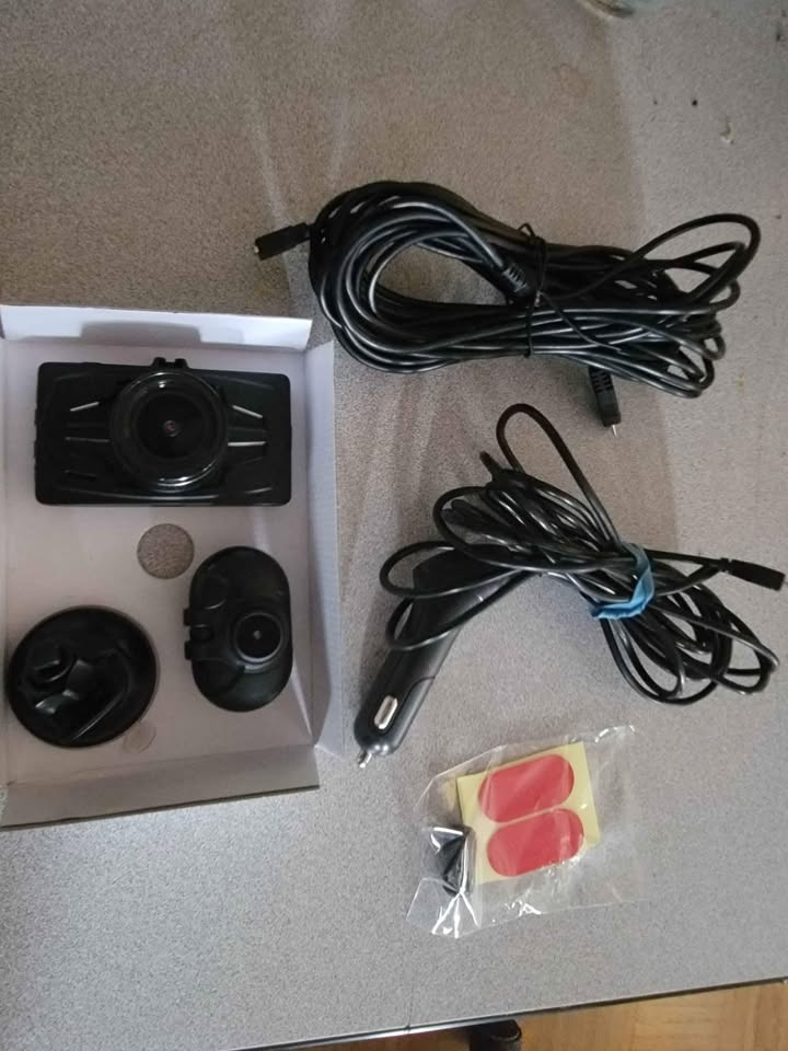 Dual dash cam with all its cables and attachments (no SD card) for sale.