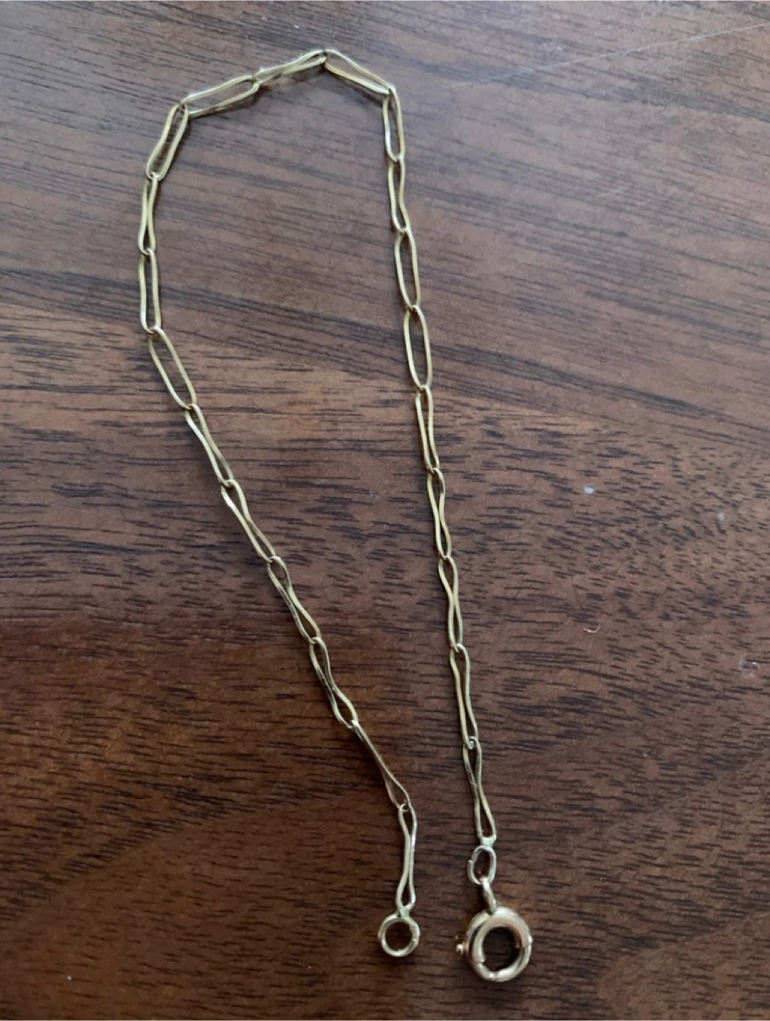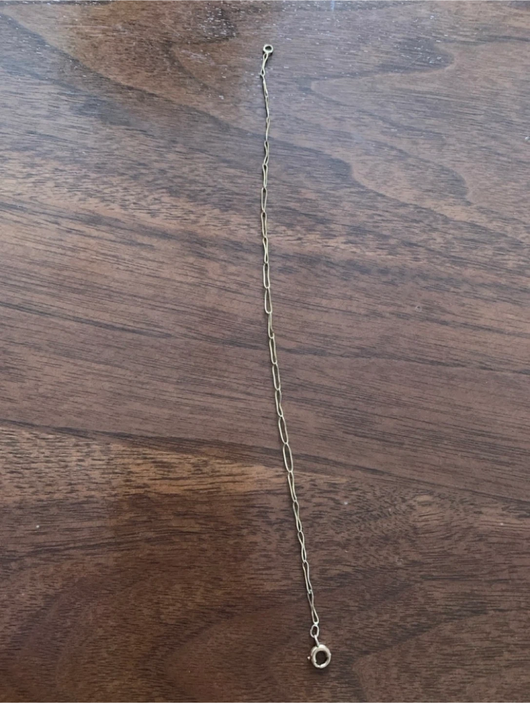 Selling a delicate gold chain bracelet or anklet. It's a simple and elegant piece that would be a great addition to any jewelry collection. No stamps so probably not real gold.