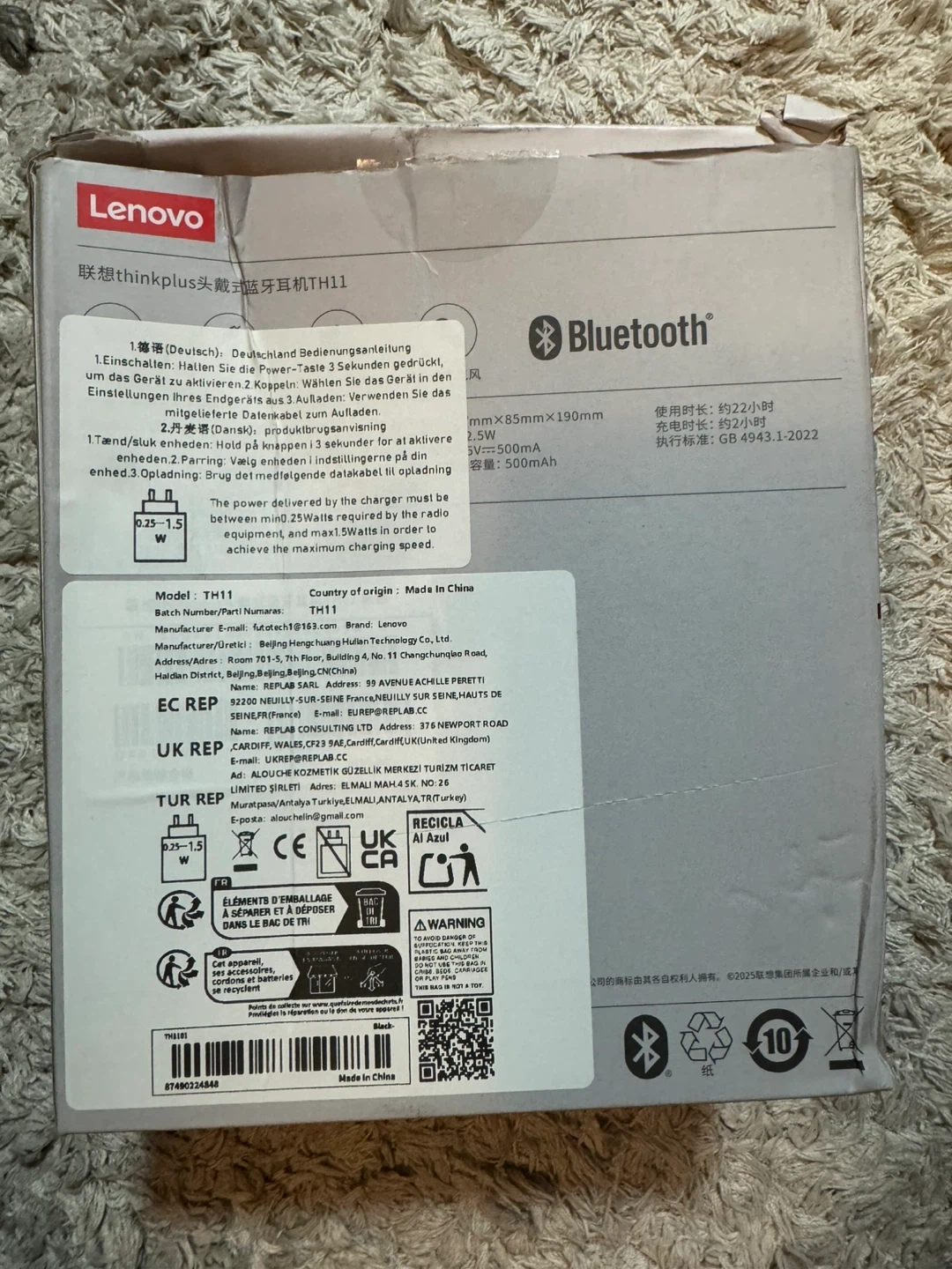 Selling a pair of Lenovo Thinkplus TH11 headphones! They are in brand new sealed condition and come with the original box. Perfect for listening to your favourite tunes or podcasts on the go. Grab them while they're available! The box is just damaged but it’s sealed.