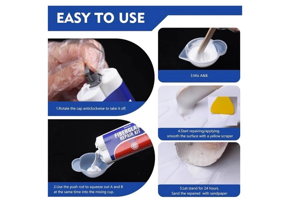 Marine Fiberglass Boat Repair Kit, 100ml Gel Coat Repair Kit for Boats, Fiberglass Repair Kit for Boats, Epoxy Resin Glue Filler Fix Scratch, Crack, Hole, Pit, Suitable for Porcelain Acrylic (White)