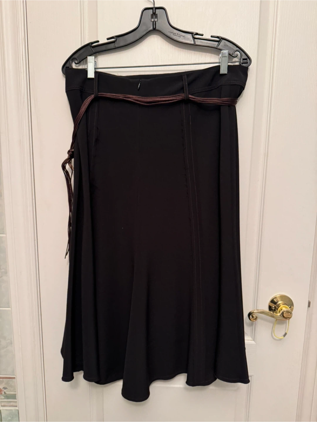 Selling a never worn black skirt from Melanie Lyne. It's a size 14 and features a unique design with a decorative belt. Perfect for adding a touch of elegance to your wardrobe!