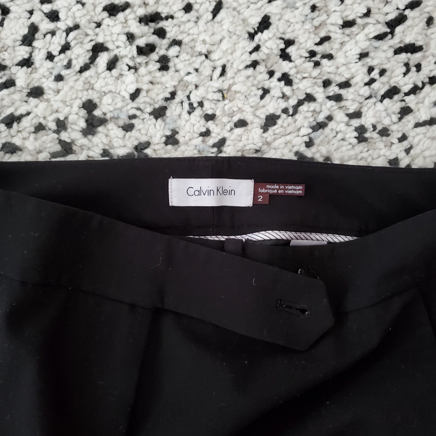 Selling a pair of Calvin Klein black trousers in size 2. They are in good condition and measure approximately 36 inches in length. Perfect for work or a night out. Size suitable for petite height.