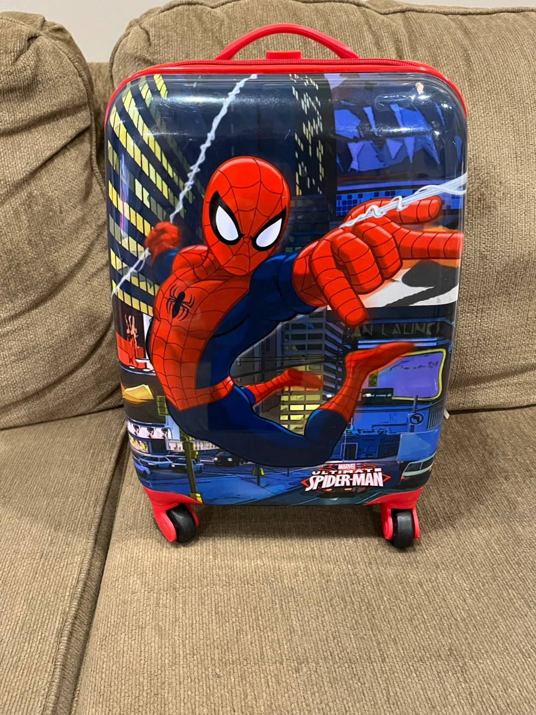 Selling a Spiderman kids rolling luggage! It has a vibrant Spiderman design on the front. There are some scratches on the back, but it's still in good working condition and ready for your child's next adventure