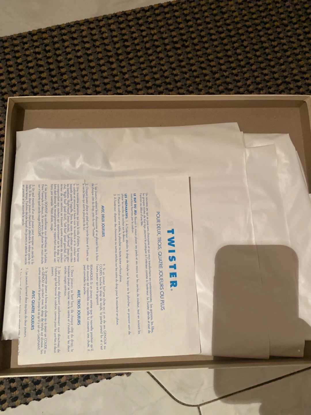 Selling a used Twister board game that’s missing the spinner. It's the game that ties you up in knots. Perfect for two to four players, ages 6+! Includes the box, the rules, and the mat. The spinner is missing.