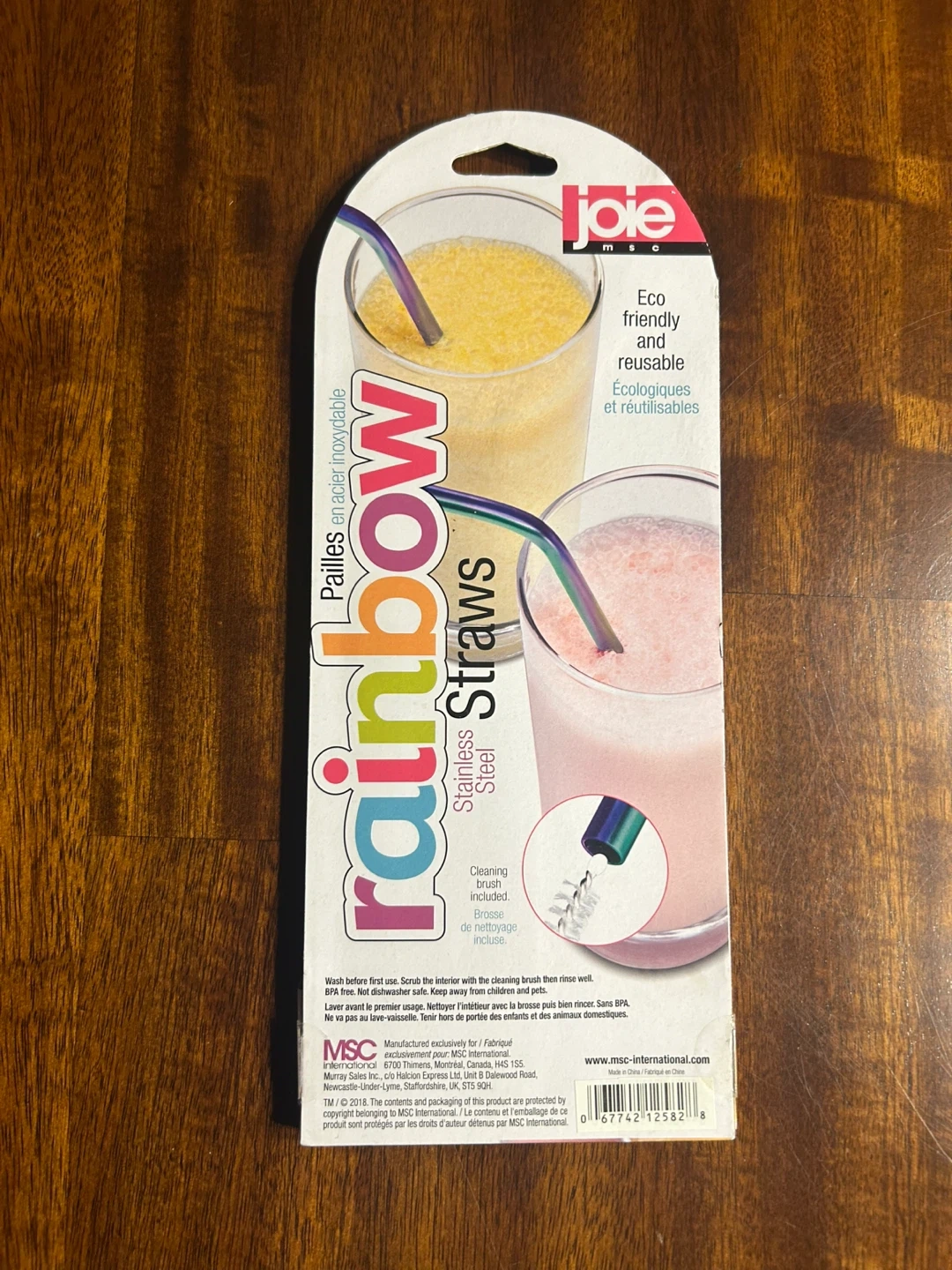 These Joie Rainbow Stainless Steel Straws are eco-friendly and reusable! The pack includes 6 straws and a cleaning brush. They are made of stainless steel, adding a fun and colourful touch to your drinks
