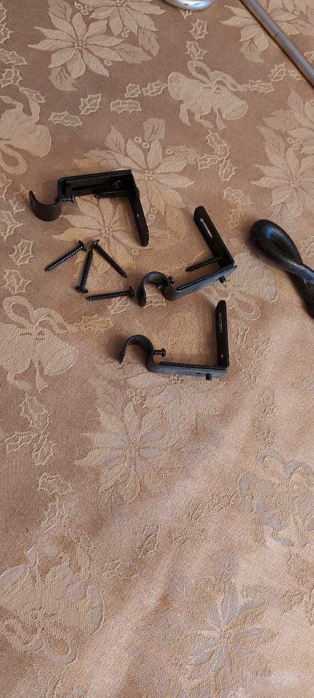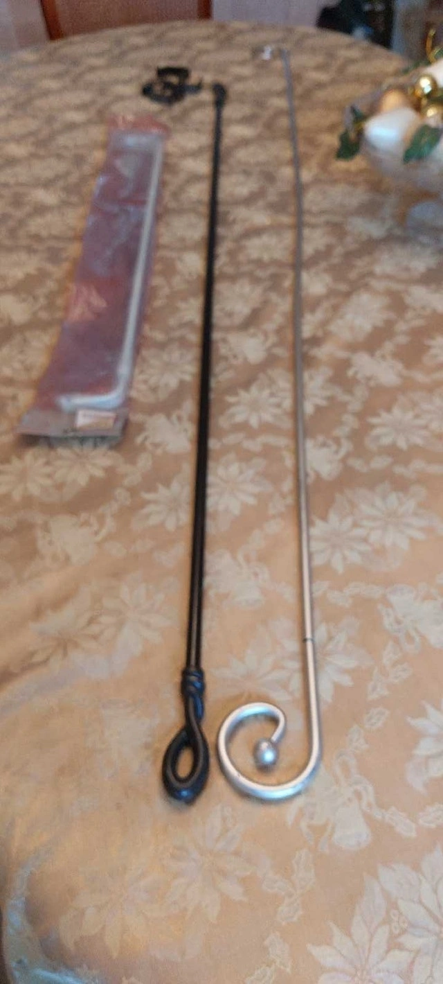 Three curtain rods for various purposes. Two include hardware. One white, one silver, one black. Black rod extends to 2 feet and 20 inches Silver is 63 inchesWhite extends from 28" to 48 "!
