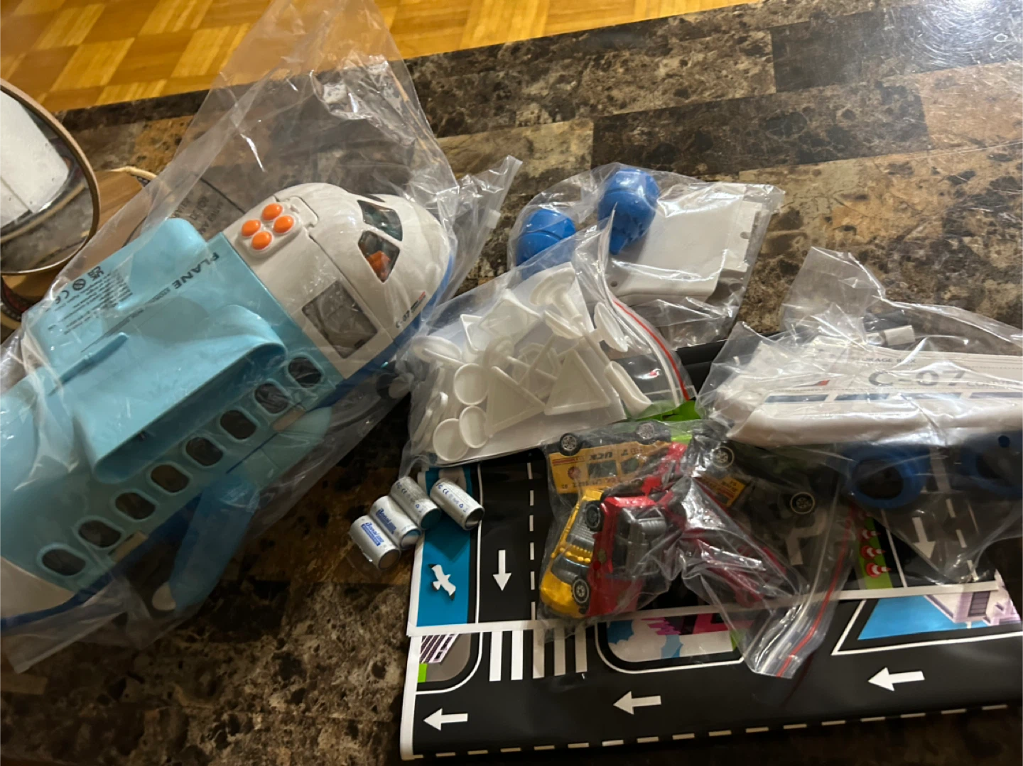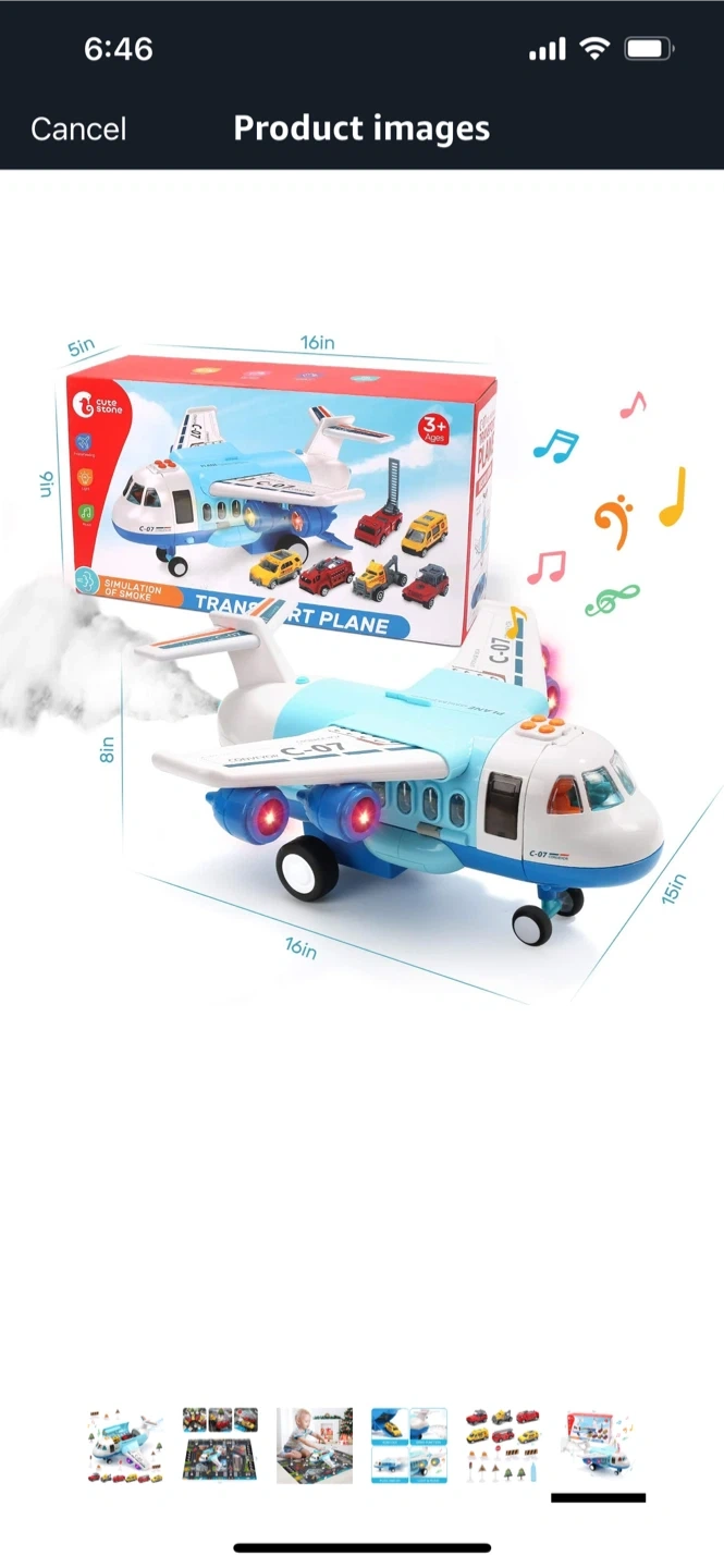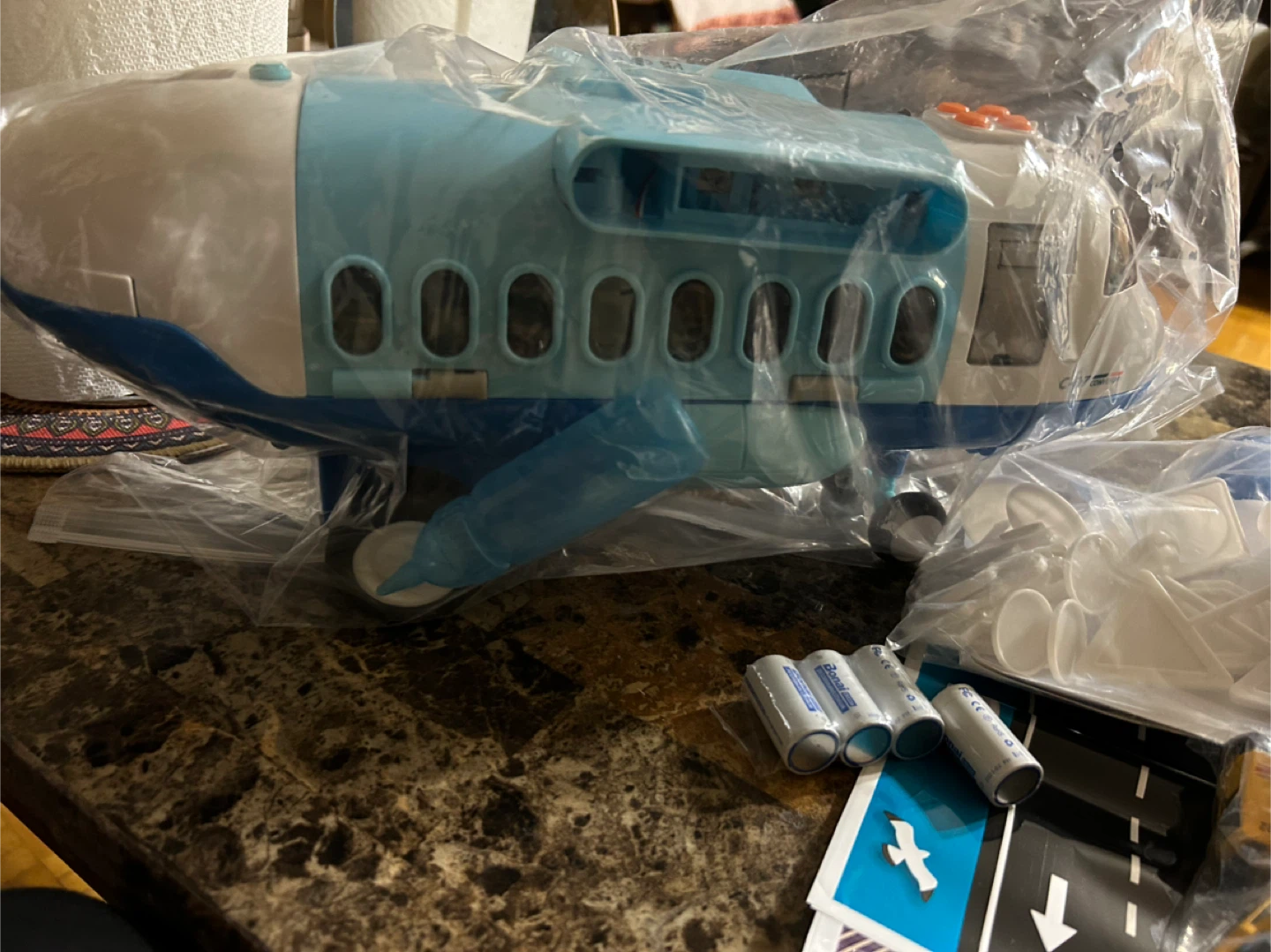 This new toy transport airplane is perfect for kids aged 3 and up! It includes several toy cars and traffic accessories for hours of imaginative play. It features light and music, a spray function, and a rush out feature for added fun!