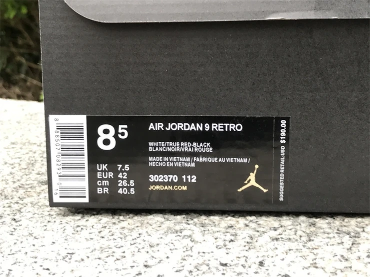 Air Jordan 9 Retro White/True Red-Black US 9.5