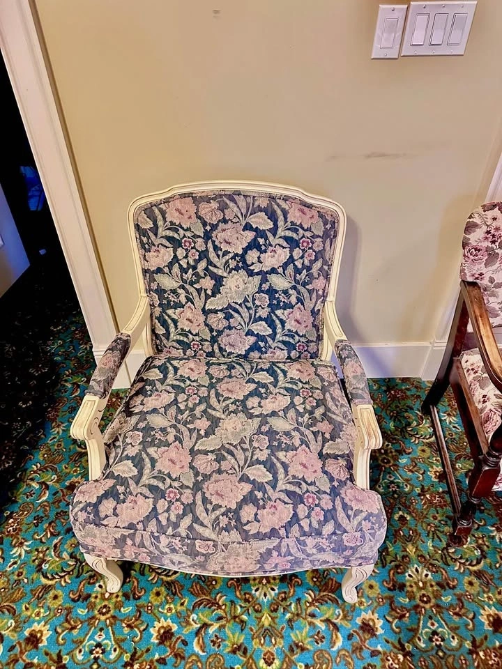 Vintage Floral Carved-Frame Armchair