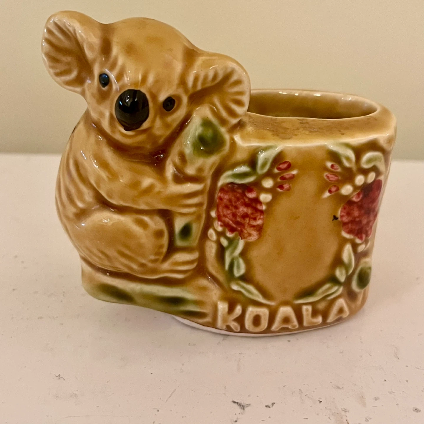 Sweet midcentury koala toothpick holder in good vintage condition, with a charming retro look, marked Japan on the bottom. Rare find!