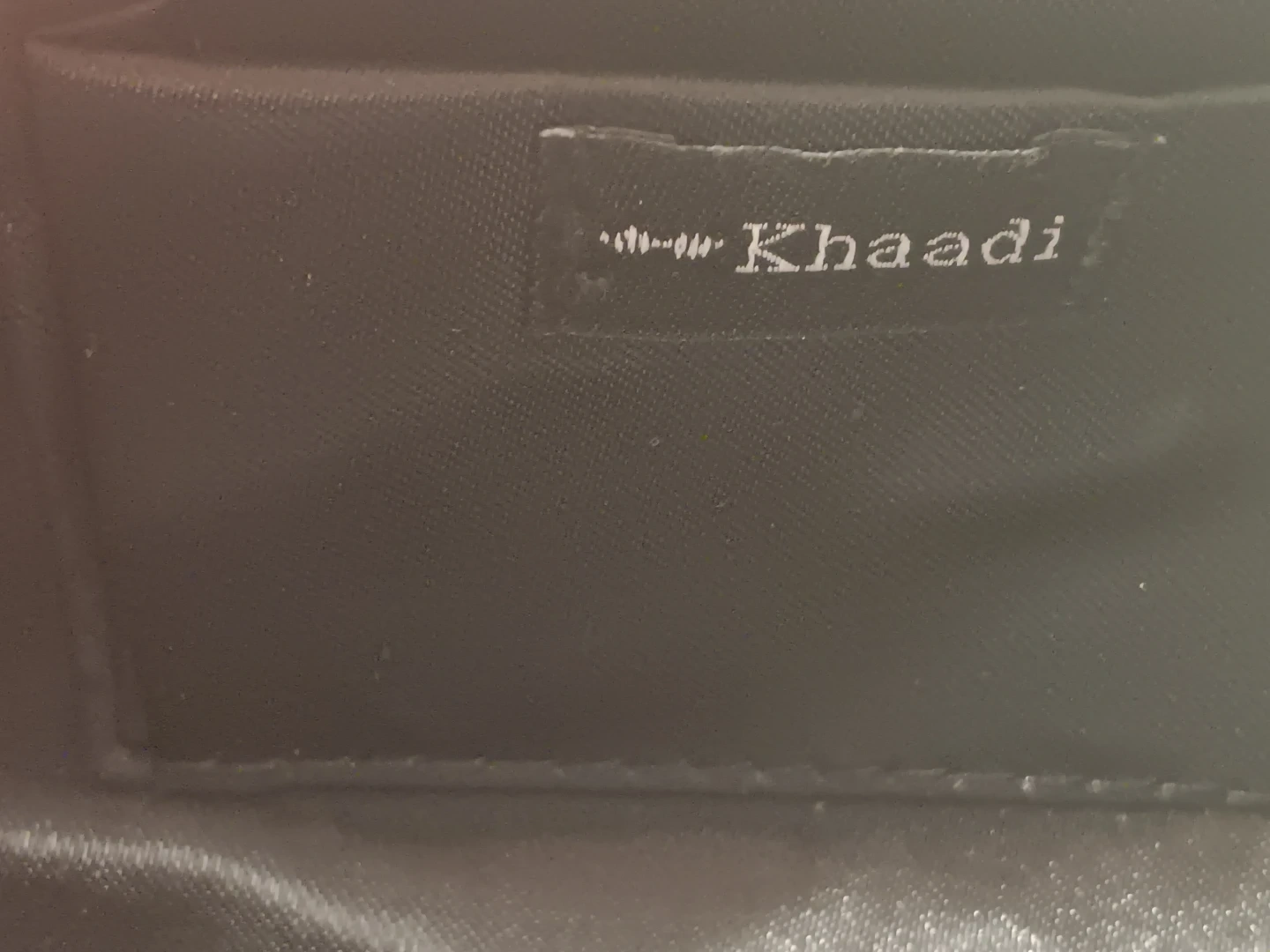 Selling a stylish Khaddi clutch. It features a unique design with blue, gold, and cream stripes. Perfect for adding a touch of elegance to any outfit!