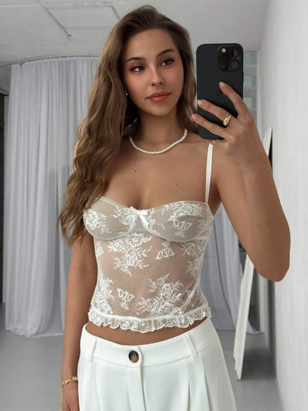 Aloruh Romantic Lace Semi-Sheer White Camisole